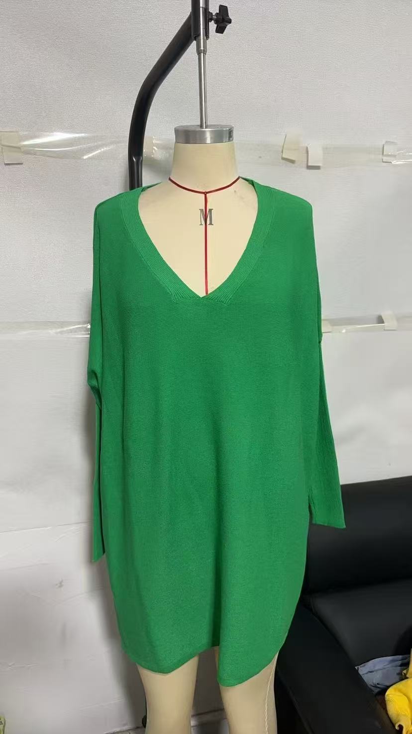2024 새로운 아마존 독립 역 유럽과 미국의 가을 및 겨울 새로운 긴 소매 니트 V-Neck 느슨한 긴 탑스토어 가기