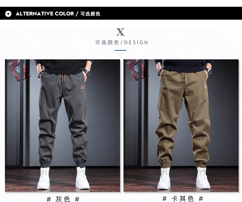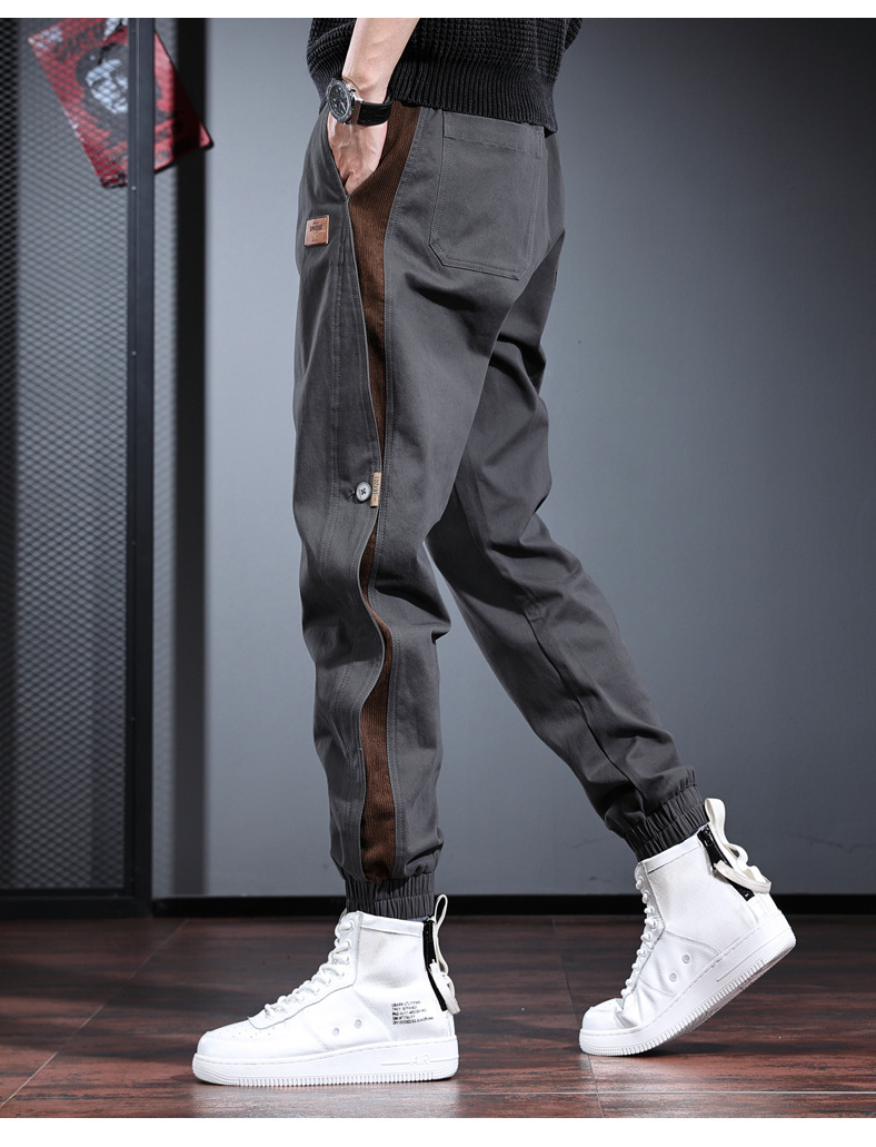 봄과 가을 남성용 바지 대비 색상 남성용 캐주얼 바지 트렌디 브랜드 캐주얼 루즈 아메리칸 스타일 하이 엔드 그레이 워크 바지