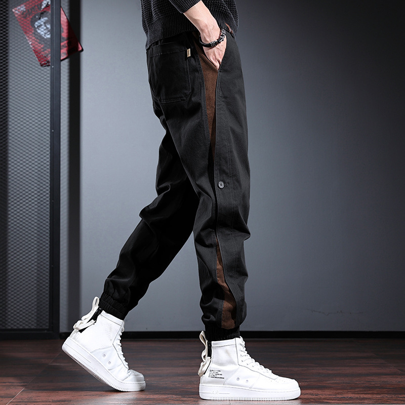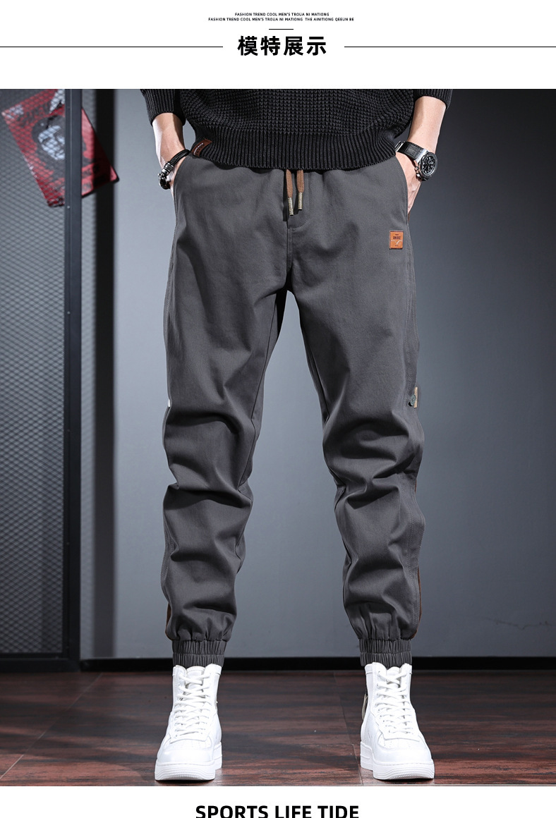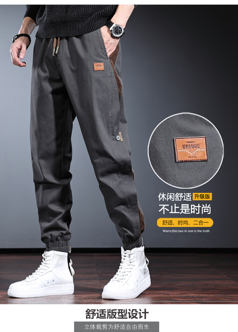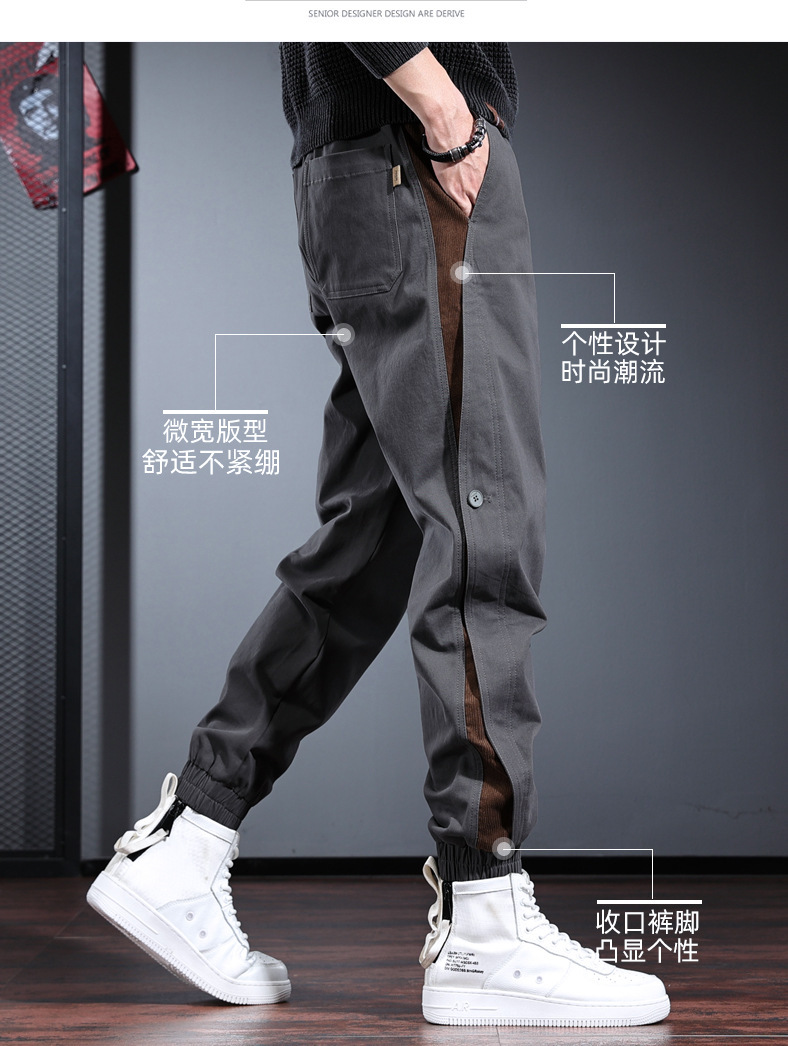 봄과 가을 남성용 바지 대비 색상 남성용 캐주얼 바지 트렌디 브랜드 캐주얼 루즈 아메리칸 스타일 하이 엔드 그레이 워크 바지스토어 가기