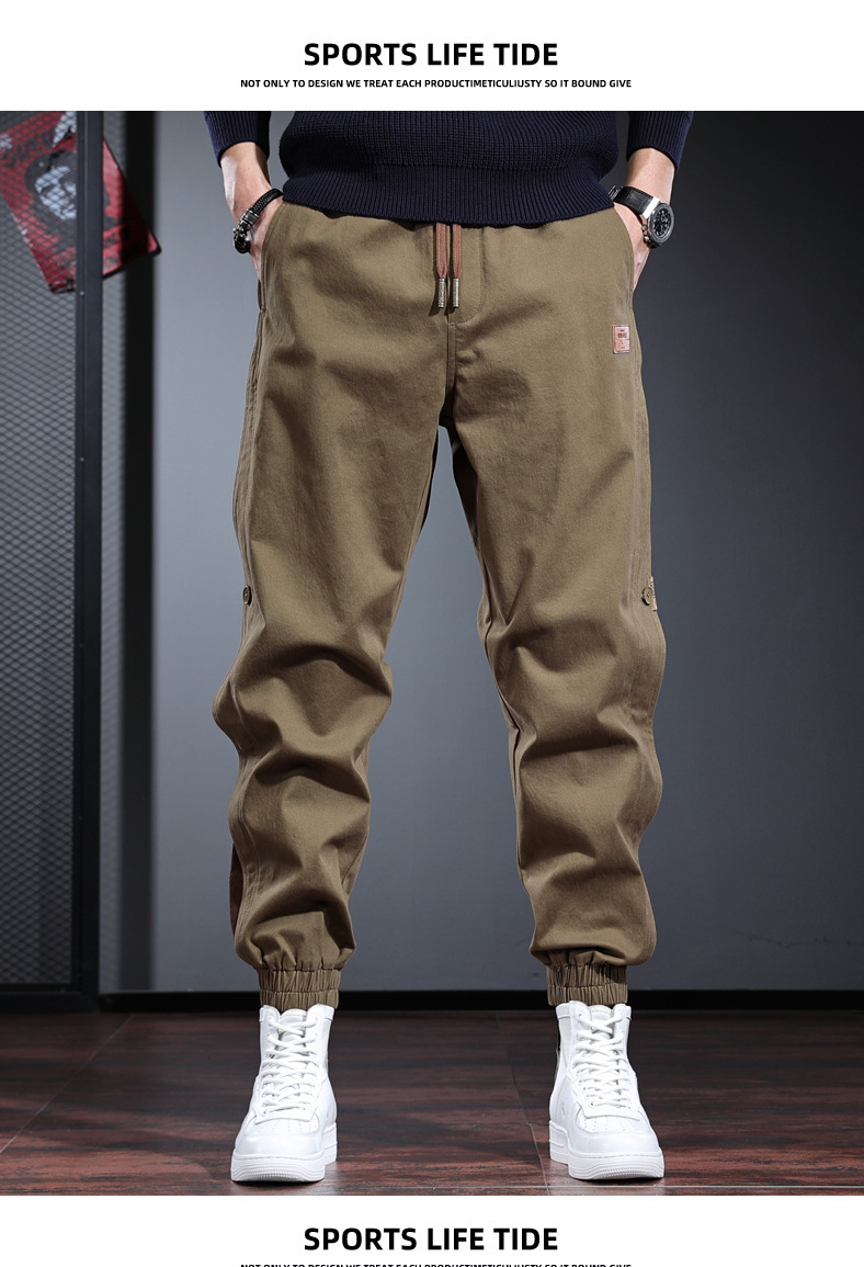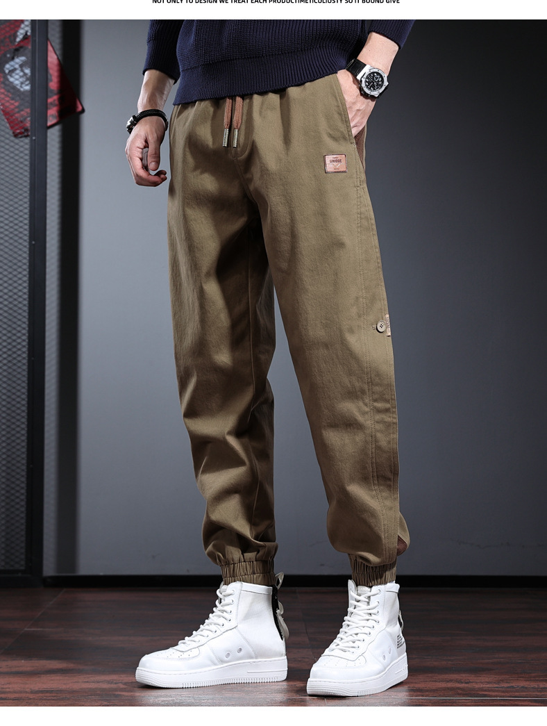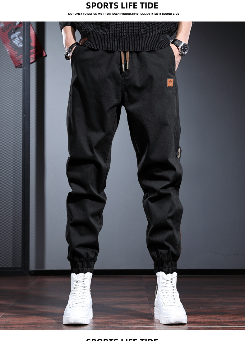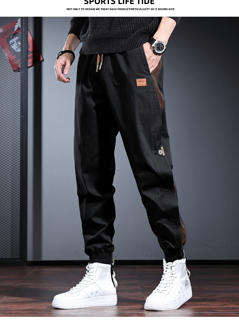 봄과 가을 남성용 바지 대비 색상 남성용 캐주얼 바지 트렌디 브랜드 캐주얼 루즈 아메리칸 스타일 하이 엔드 그레이 워크 바지스토어 가기