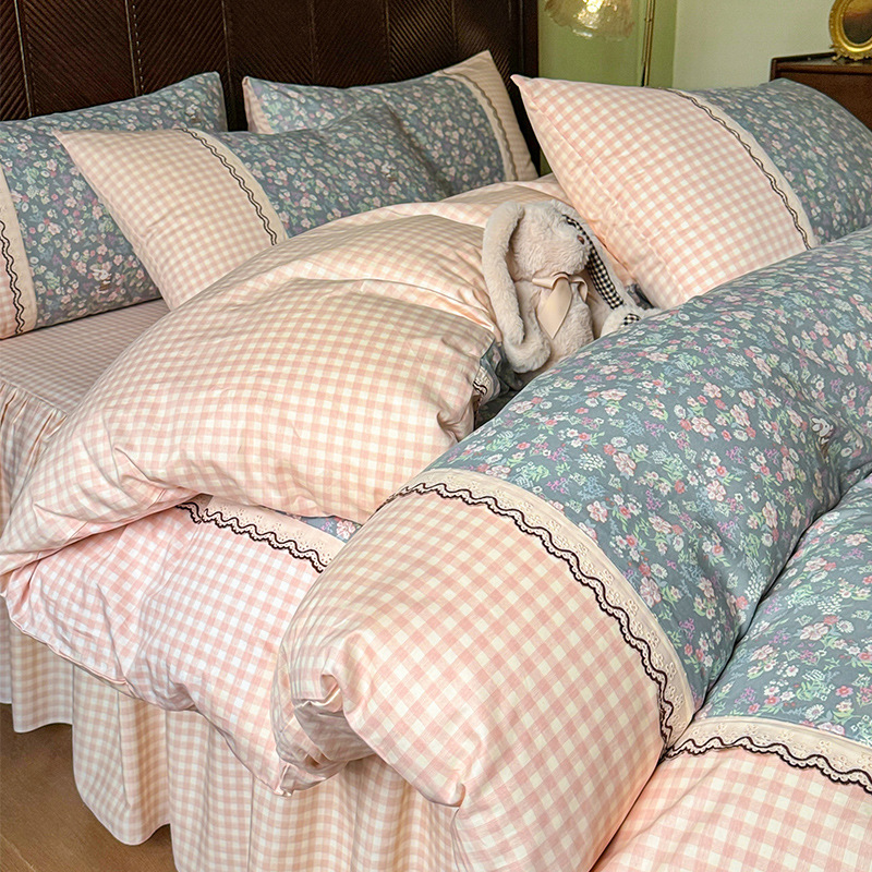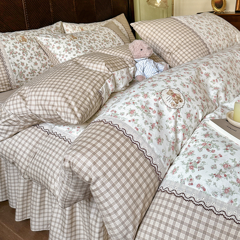 프랑스 스타일 면 침대 시트 4 조각 세트 100 면 이불 커버 싱글 침대 용품 꽃 침대 커버 4