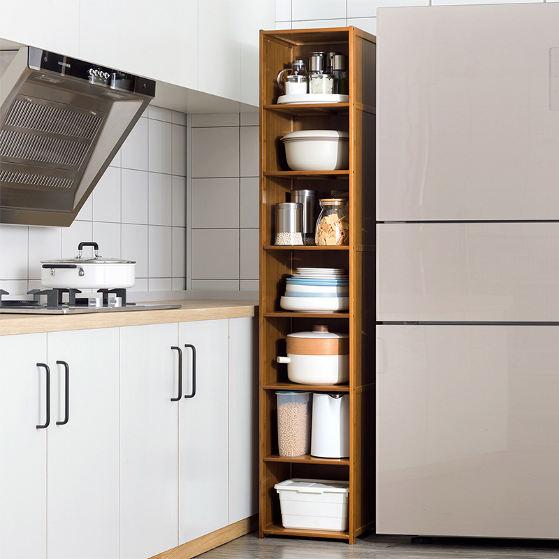 주방 갭 스토리지 랙 가정용 냄비 및 접시 조미료 보관 랙 진쑤안 용 좁은 갭 스토리지가있는 바닥에 서있는 다층 도어