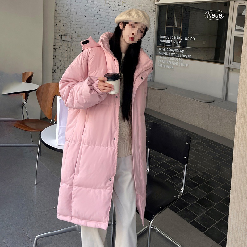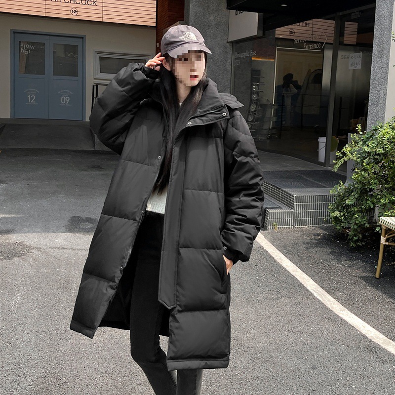 다운 재킷 남자 2024 년 겨울 새로운 중간 길이 두꺼운 따뜻한 무릎 높은 대학생 커플 북동쪽 방한복스토어 가기