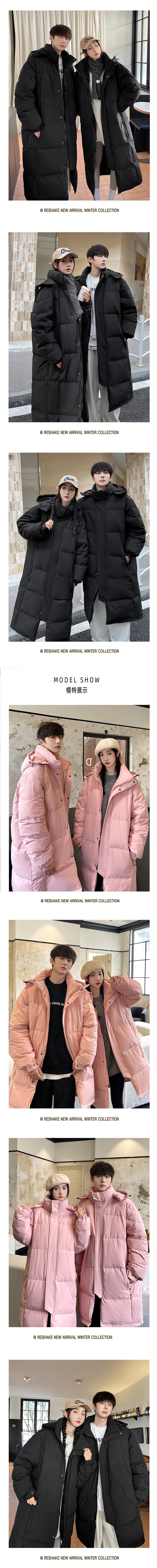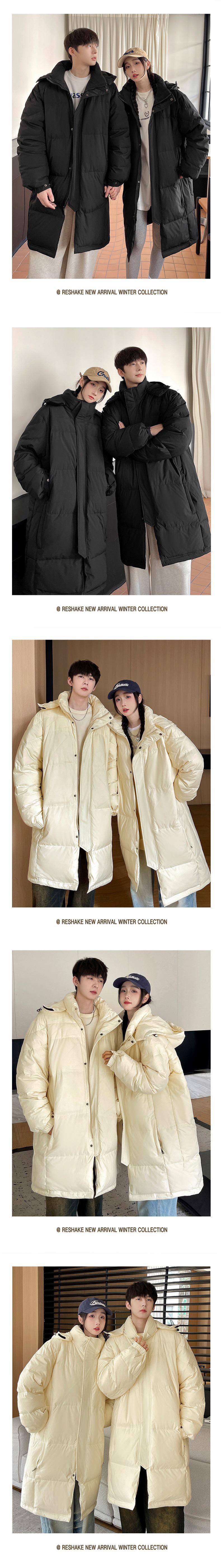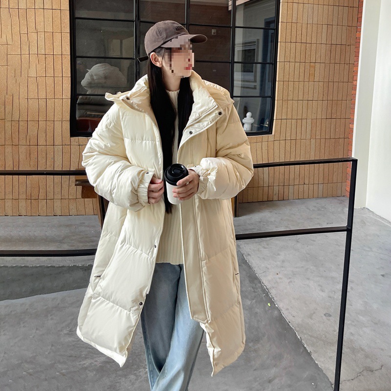 다운 재킷 남자 2024 년 겨울 새로운 중간 길이 두꺼운 따뜻한 무릎 높은 대학생 커플 북동쪽 방한복