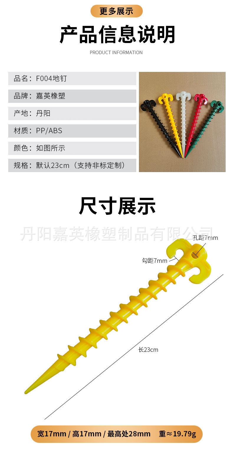 공장 국경 20cm 캠핑 텐트 경적 플라스틱 그라운드 네일 에어 몰드 고정 네일 비치 방풍 스레드 그라운드 네일스토어 가기