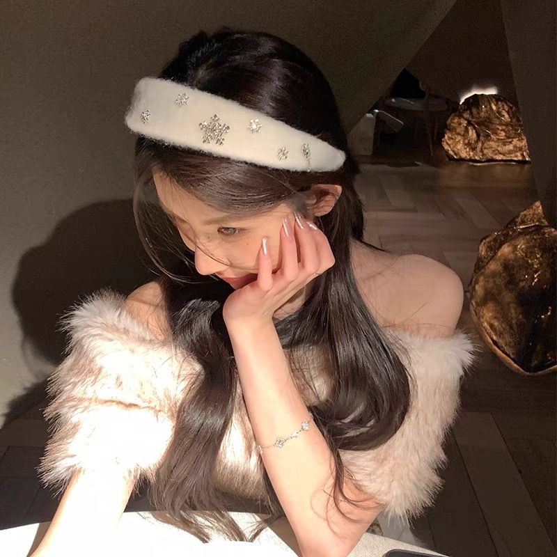 여성을 위한 오리지널 눈송이 플러시 헤드밴드, 고급 모직 챙이 넓은 머리띠, 머리핀 및 헤어 번들, 2025 새로운 헤어 액세서리 및 모자스토어 가기