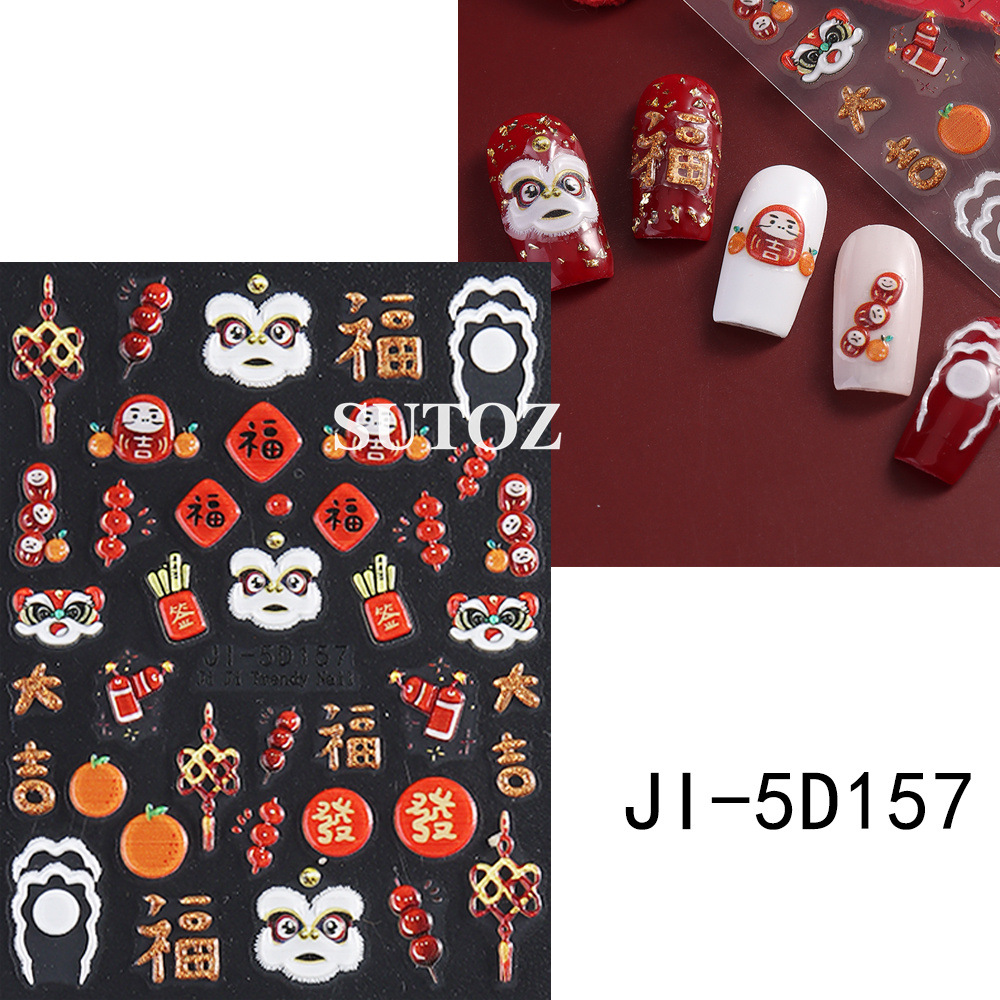 2025 년 새해 새 5D 네일 아트 스티커 전국 타이드 라이온 댄스 설탕 코팅 베리 골드 잉곳 스테레오 릴리프 백 접착 스티커스토어 가기