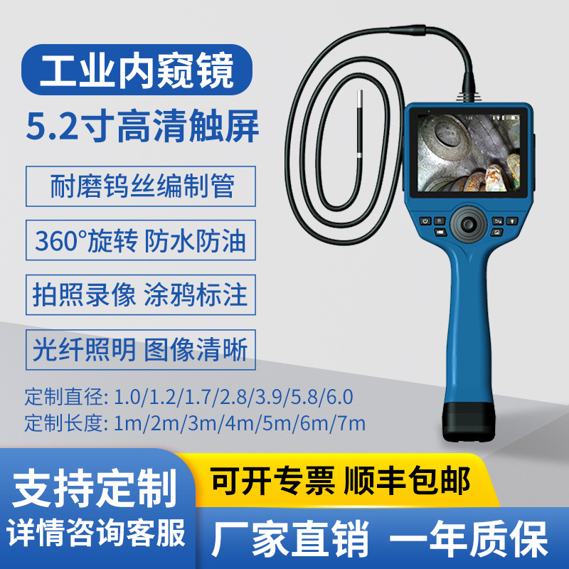 1mm 광섬유 조명 산업용 내시경 360도 회전 고화질 카메라 듀얼 렌즈 터치스크린 파이프라인 검사기스토어 가기