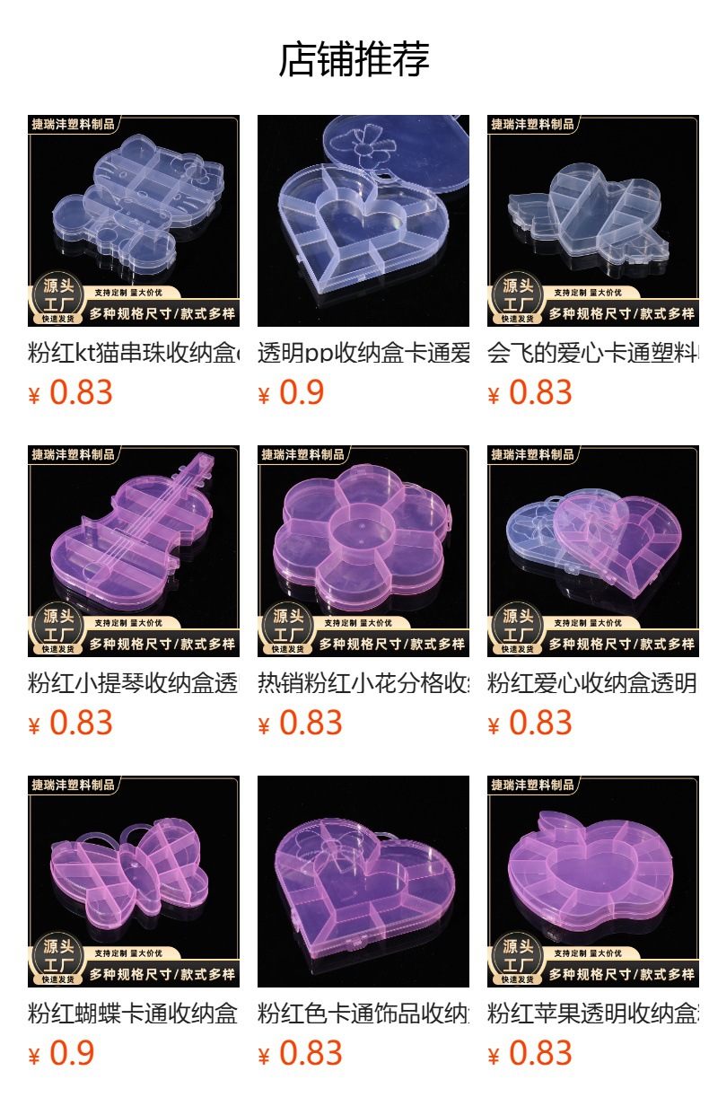 핑크 나비 만화 투명 저장 상자 PP 소재 뚜껑 DIY 구슬 보석 플라스틱 고무 밴드 상자 도매스토어 가기
