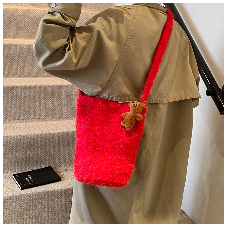 국경 2024 새로운 휴대 전화 가방 어깨 크로스 바디 백 솔리드 컬러 가을과 겨울 여성을위한 새로운 올 매치 푹신한 가방 센스 백스토어 가기