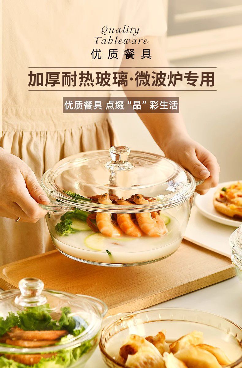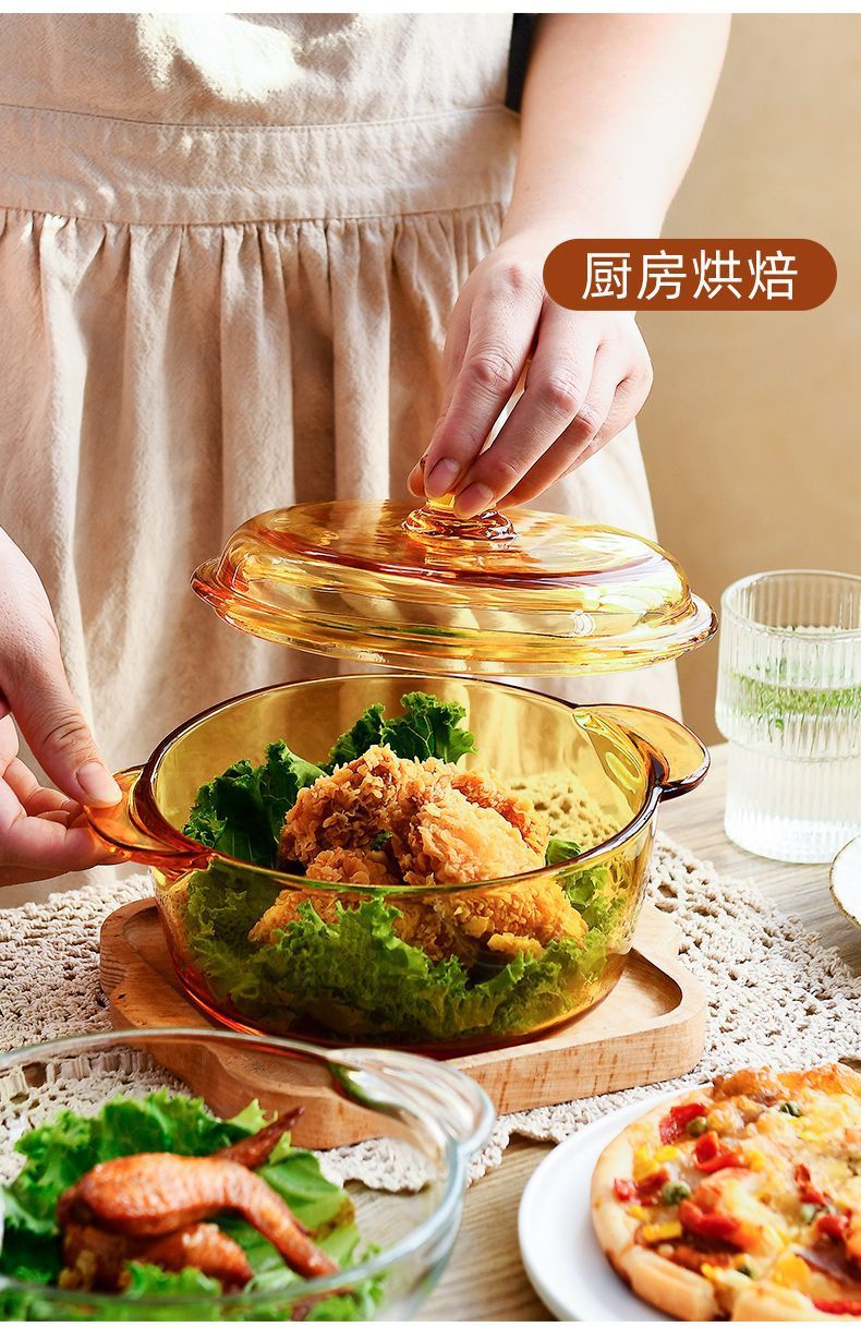 유리 그릇 고온 저항하는 가정용 방열 강화 베이킹 그릇 두꺼운 전자 레인지 더블 이어 베이킹 팬 뚜껑 치즈 구운스토어 가기