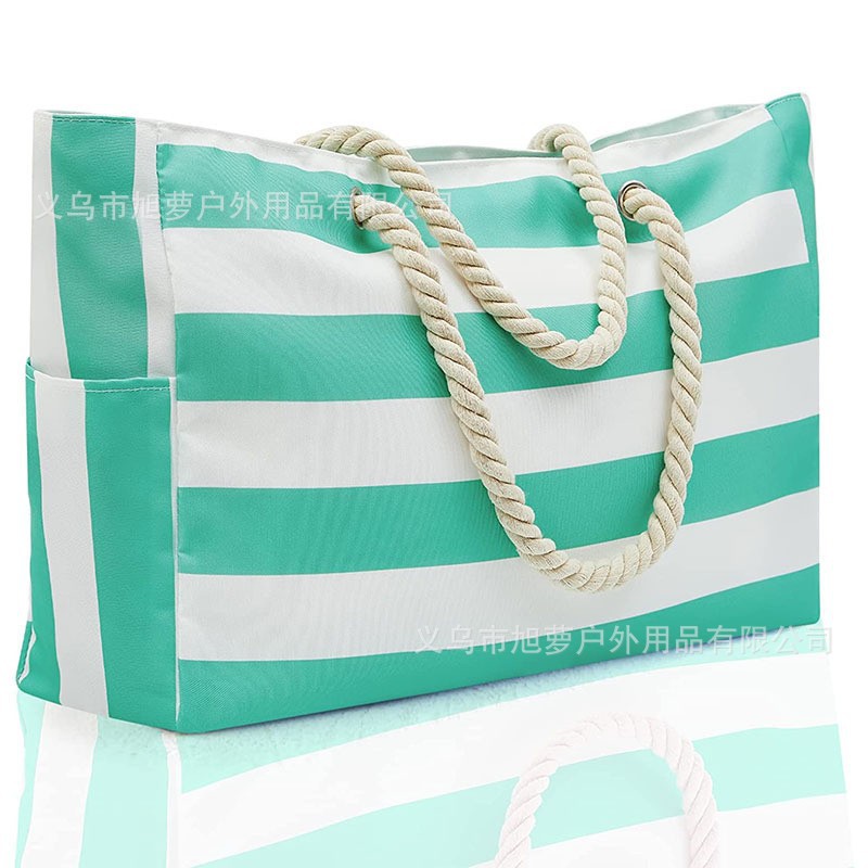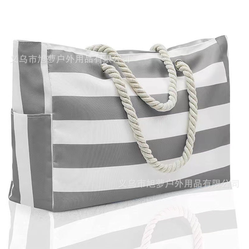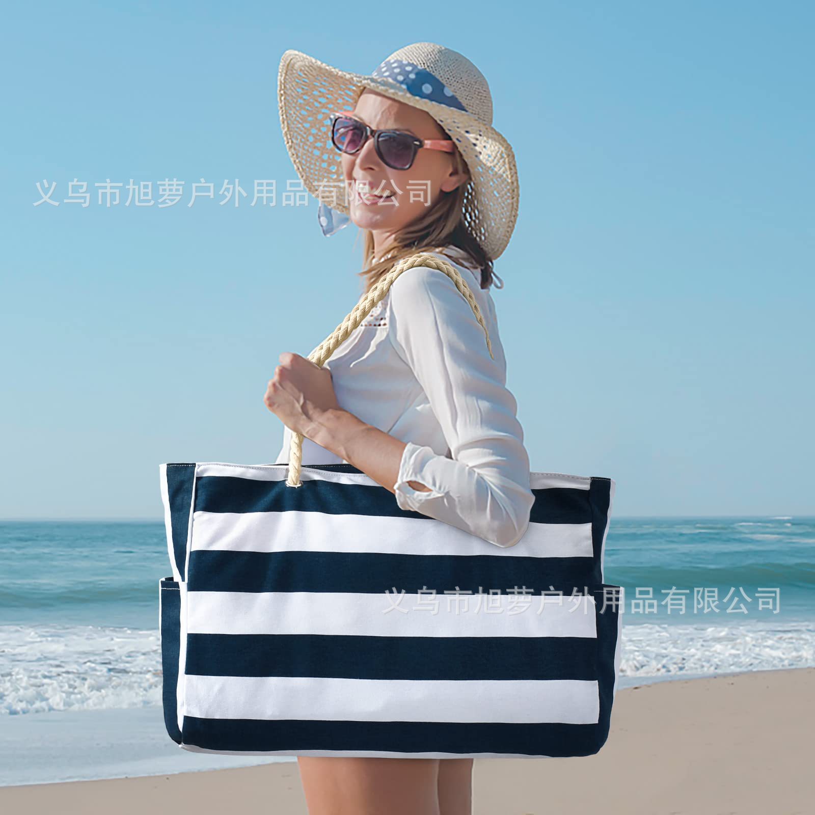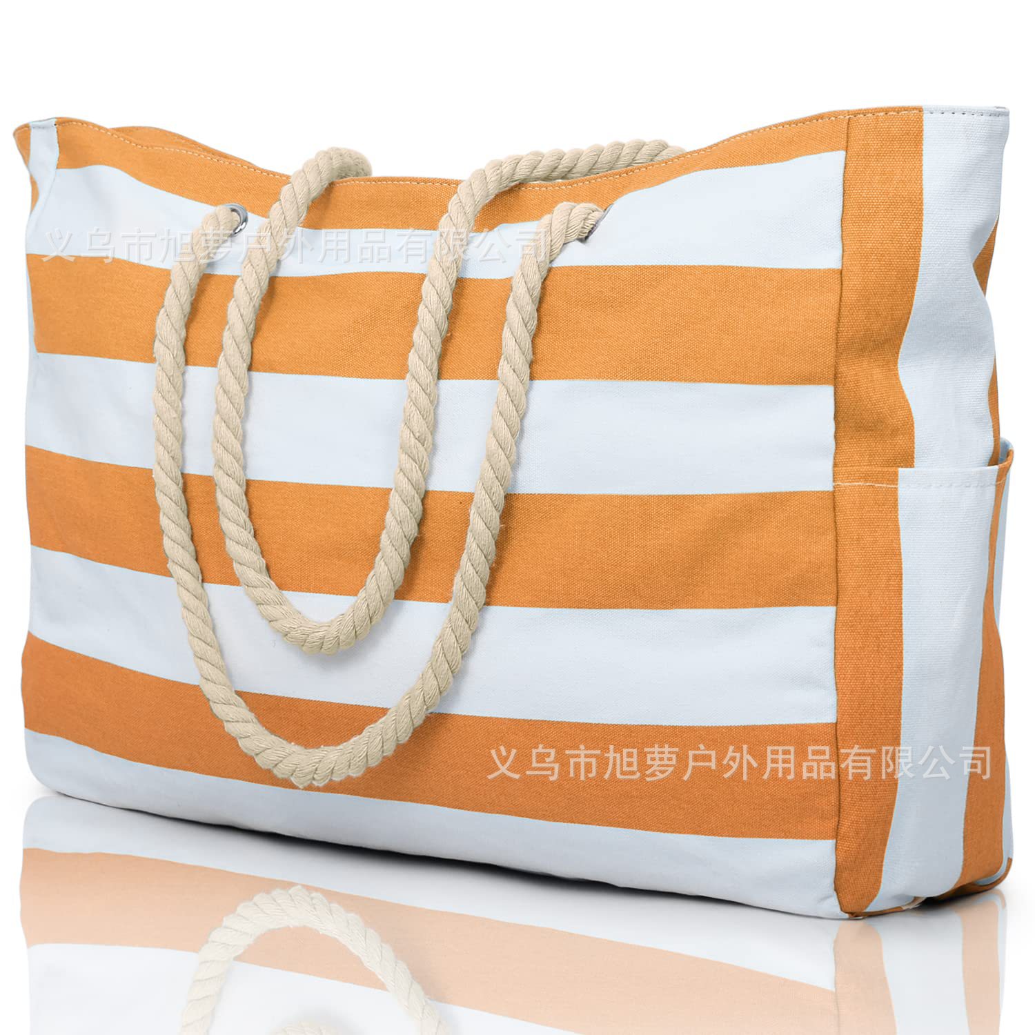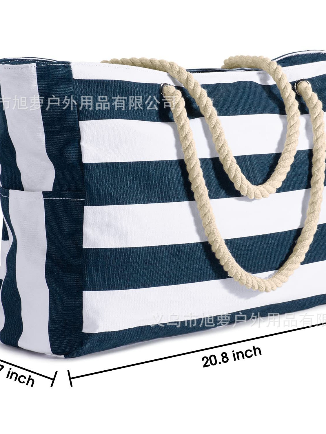 국경 줄무늬 보헤미안 대형 저장 가방 비치 백 발수성 대용량 핸드백 여행 캔버스 가방