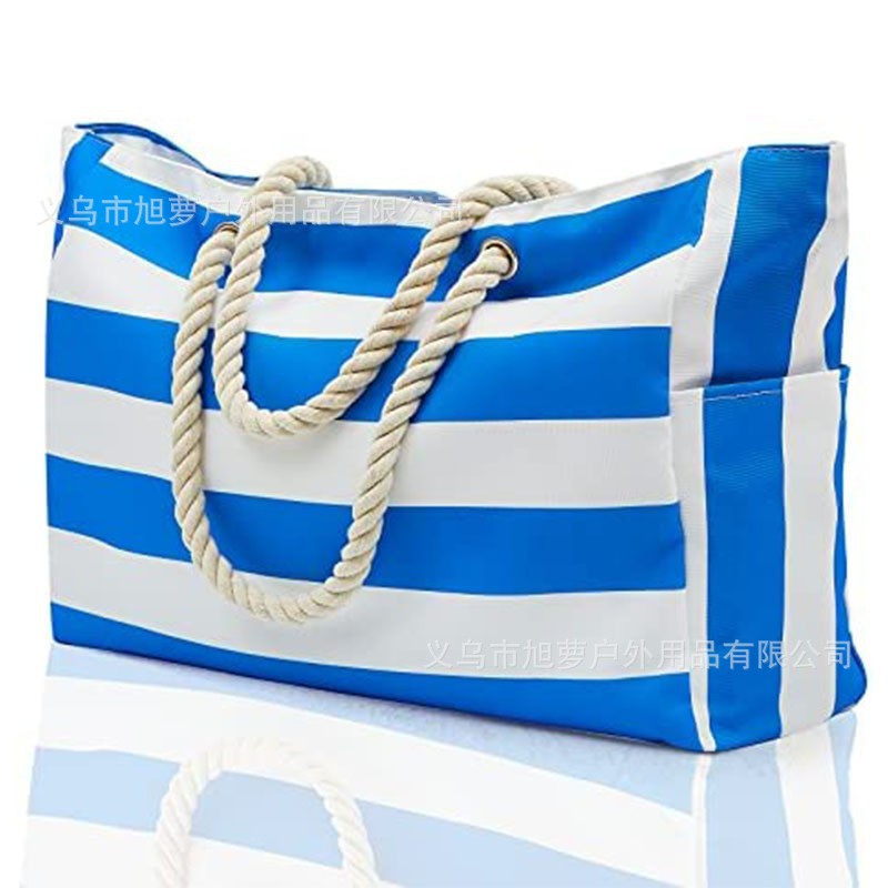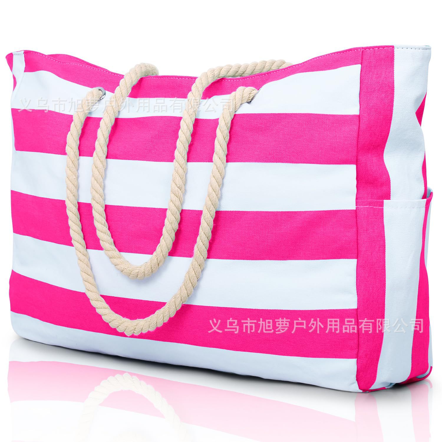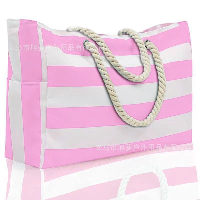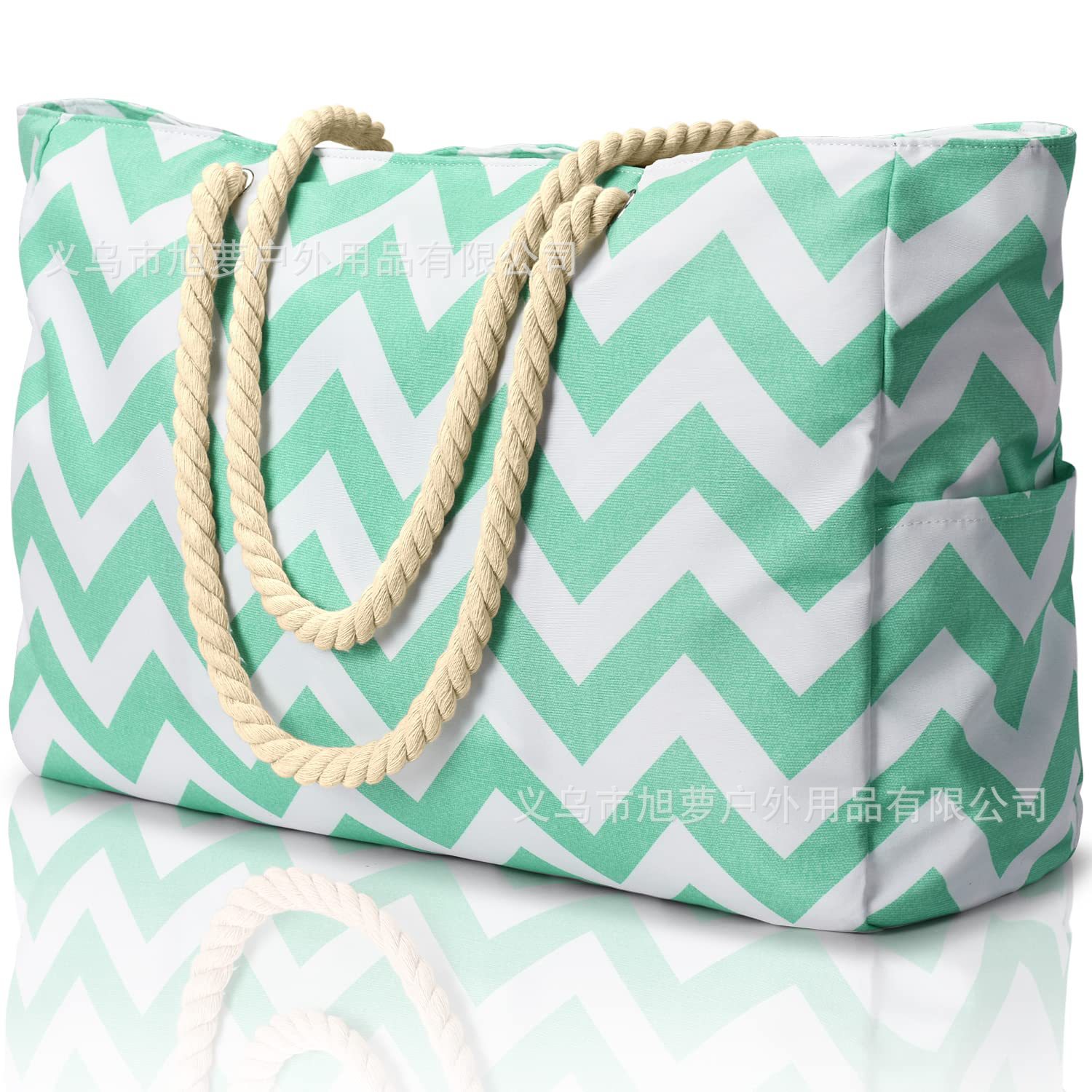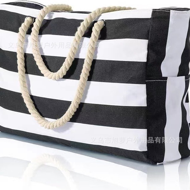 국경 줄무늬 보헤미안 대형 저장 가방 비치 백 발수성 대용량 핸드백 여행 캔버스 가방