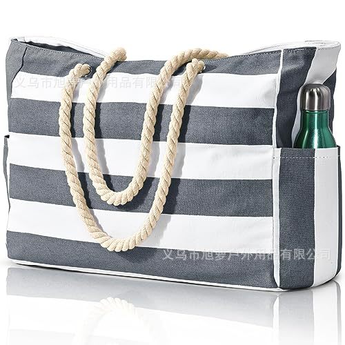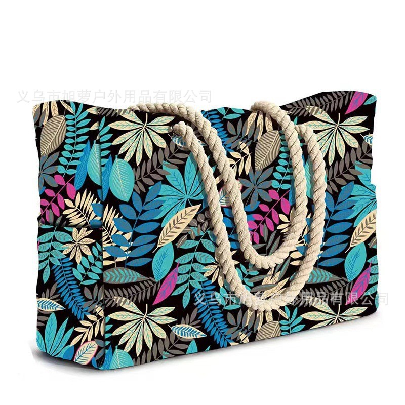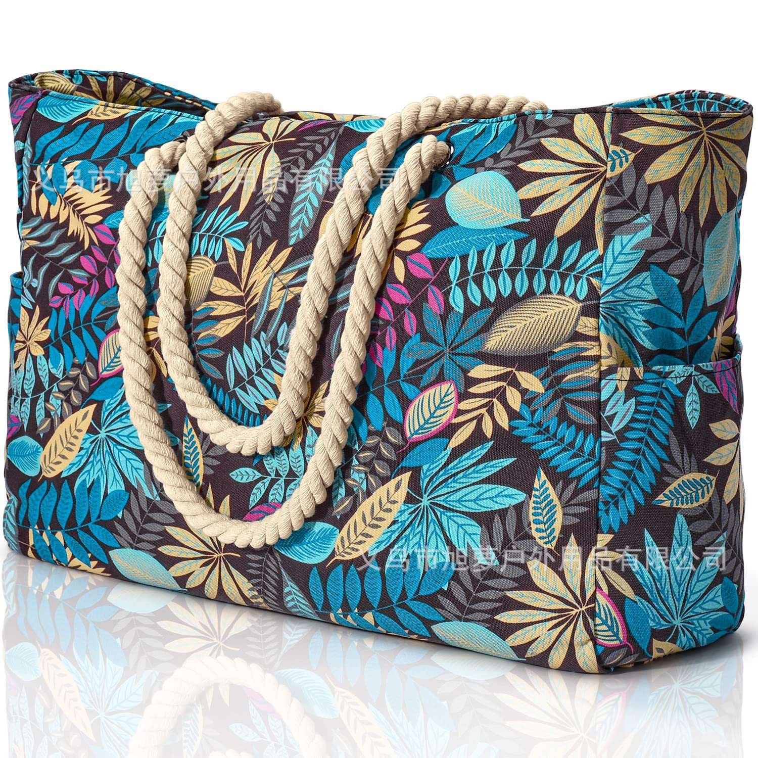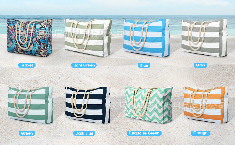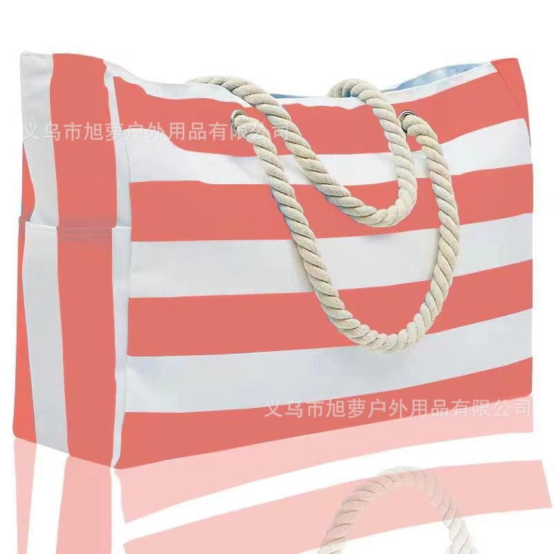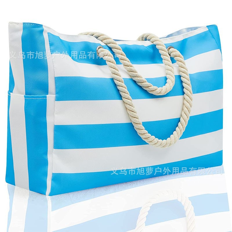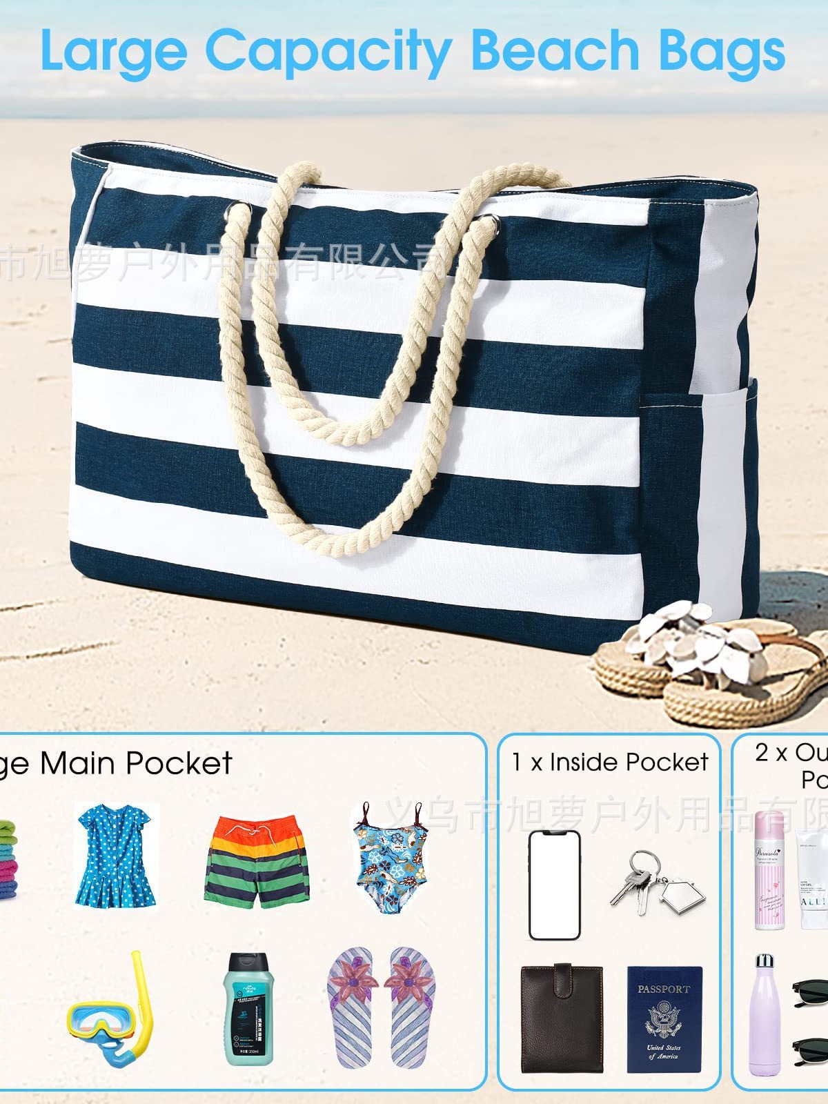 국경 줄무늬 보헤미안 대형 저장 가방 비치 백 발수성 대용량 핸드백 여행 캔버스 가방