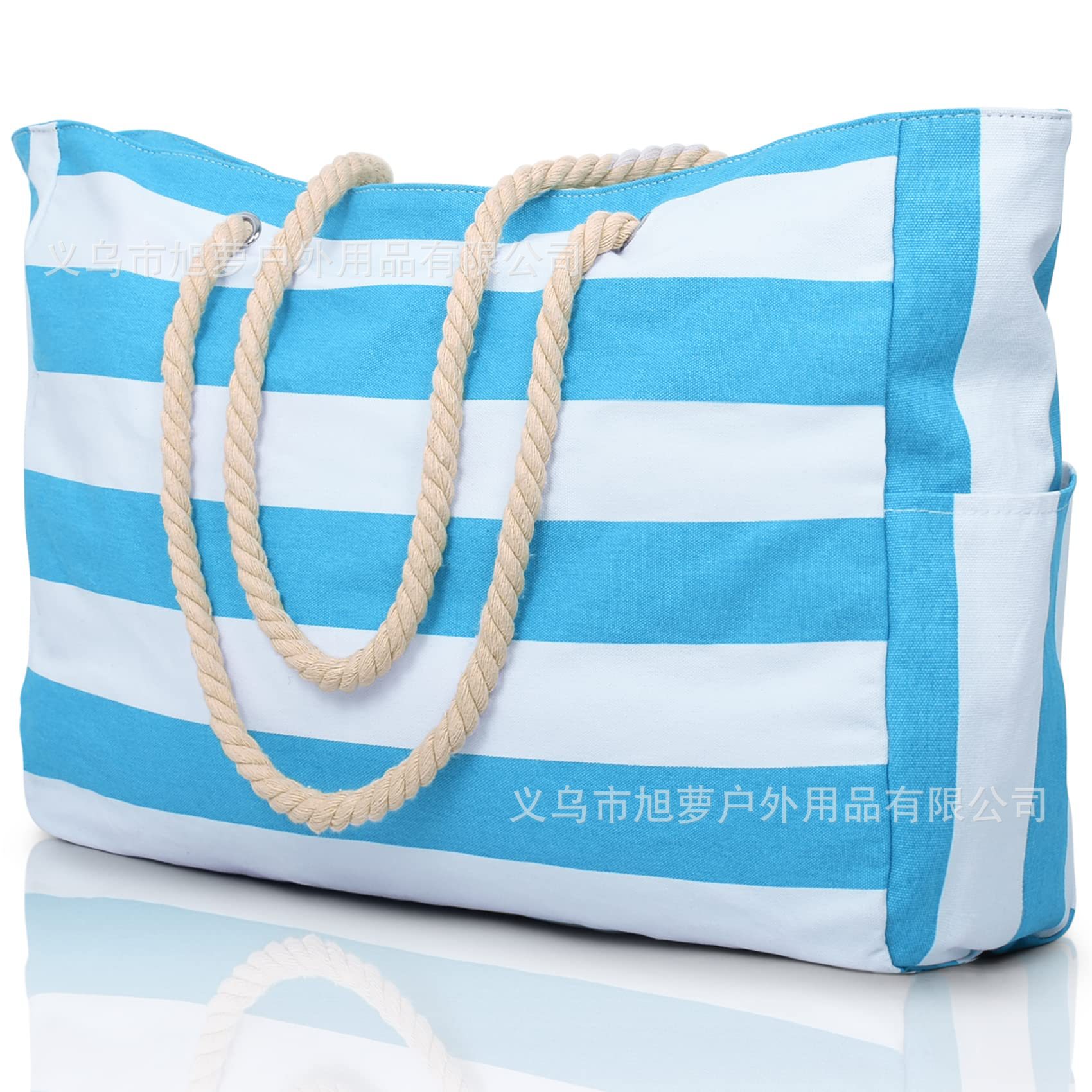 국경 줄무늬 보헤미안 대형 저장 가방 비치 백 발수성 대용량 핸드백 여행 캔버스 가방스토어 가기