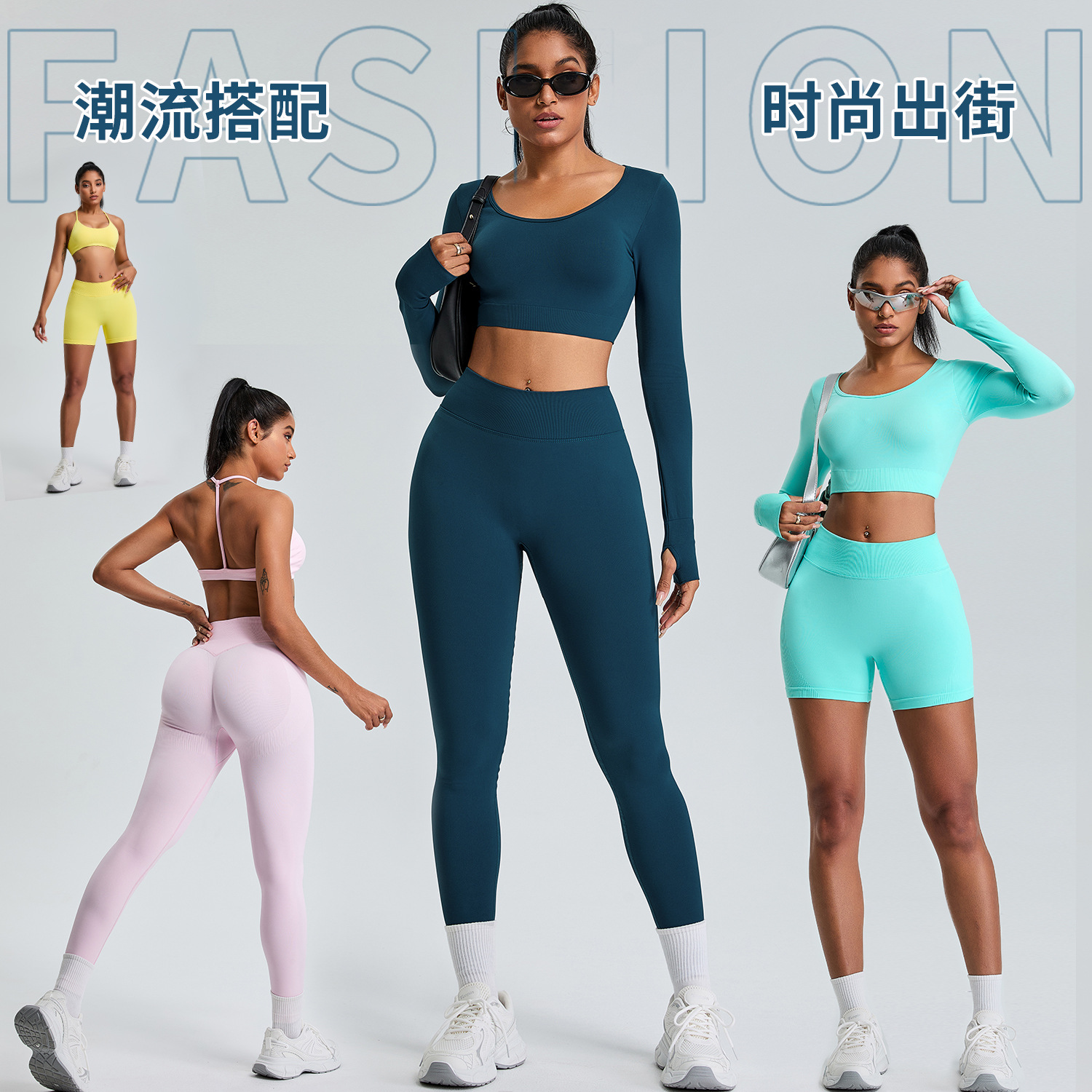 국경을 넘는 새로운 가을과 겨울 원활한 스포츠 세트 복숭아 엉덩이 야외 달리기 요가 세트 4 피스 피트니스 세트스토어 가기