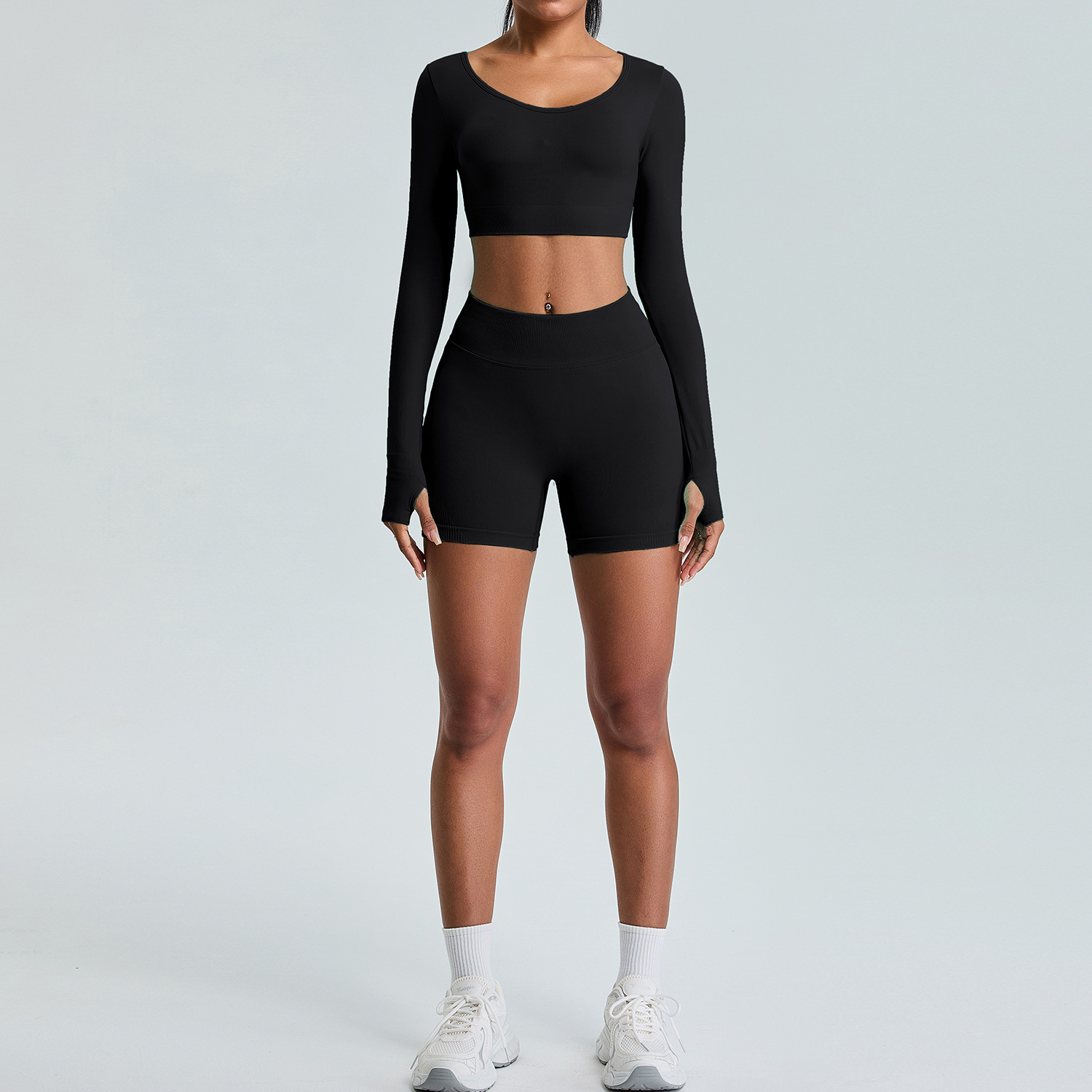 국경을 넘는 새로운 가을과 겨울 원활한 스포츠 세트 복숭아 엉덩이 야외 달리기 요가 세트 4 피스 피트니스 세트