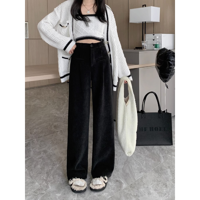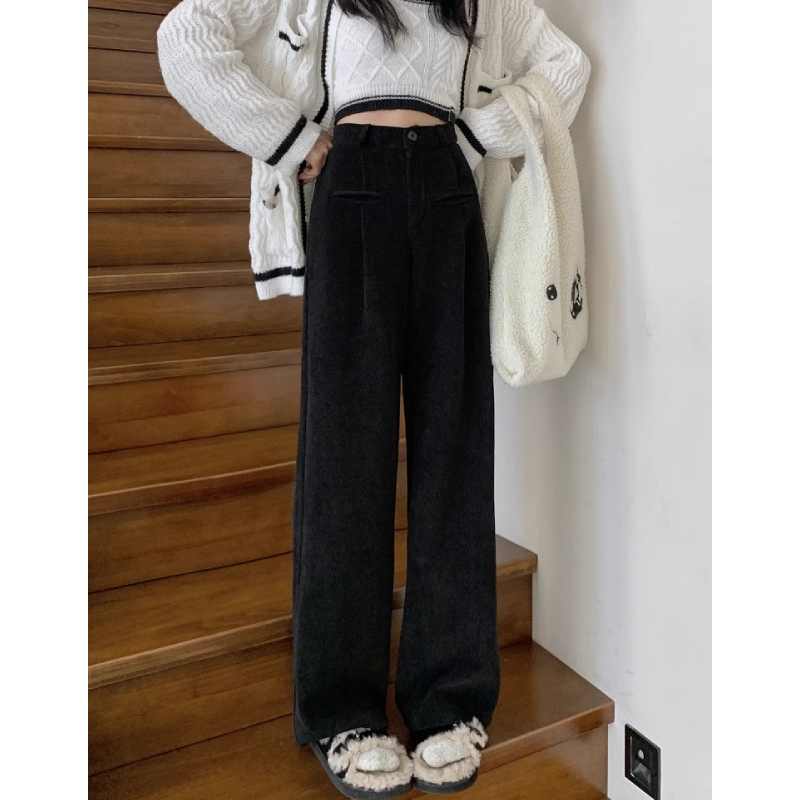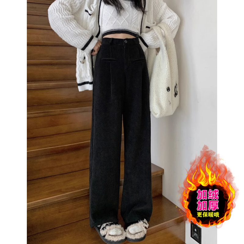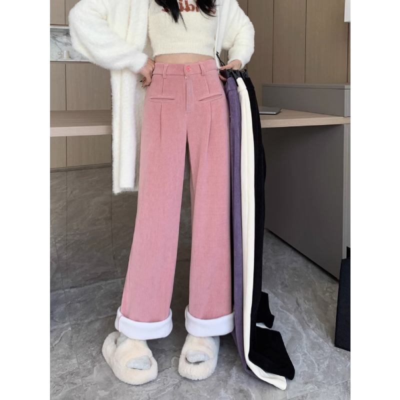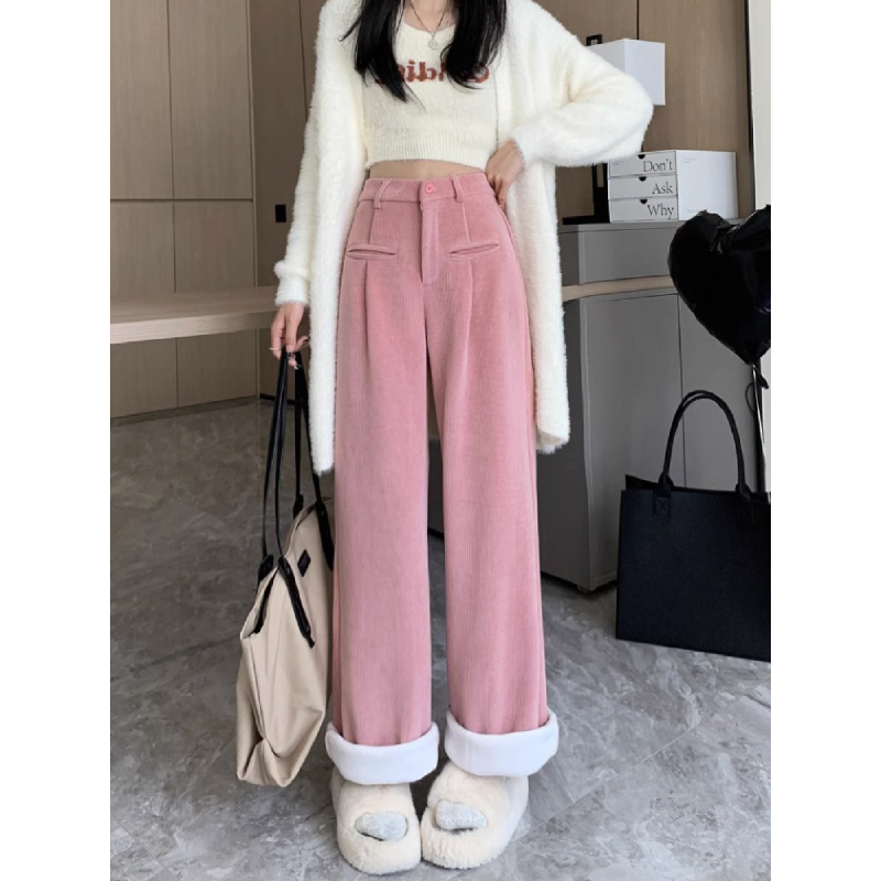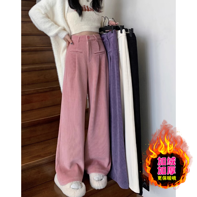 기모 두꺼운 플러스 사이즈 핑크 코듀로이 바지 여성의 가을과 겨울 통통녀 느슨한 슬리밍 작은 넓은 다리 캐주얼 바지스토어 가기