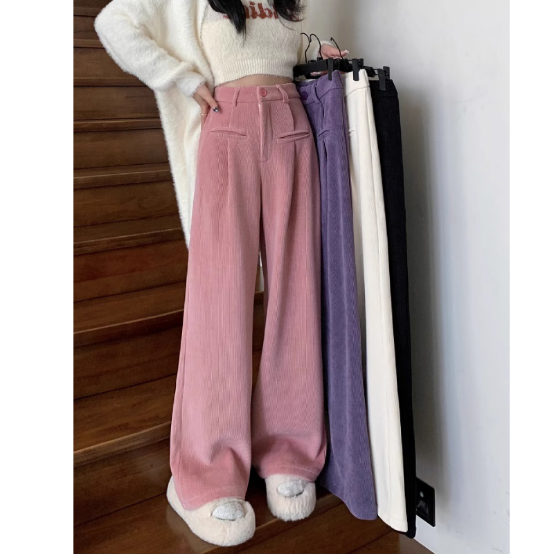 기모 두꺼운 플러스 사이즈 핑크 코듀로이 바지 여성의 가을과 겨울 통통녀 느슨한 슬리밍 작은 넓은 다리 캐주얼 바지