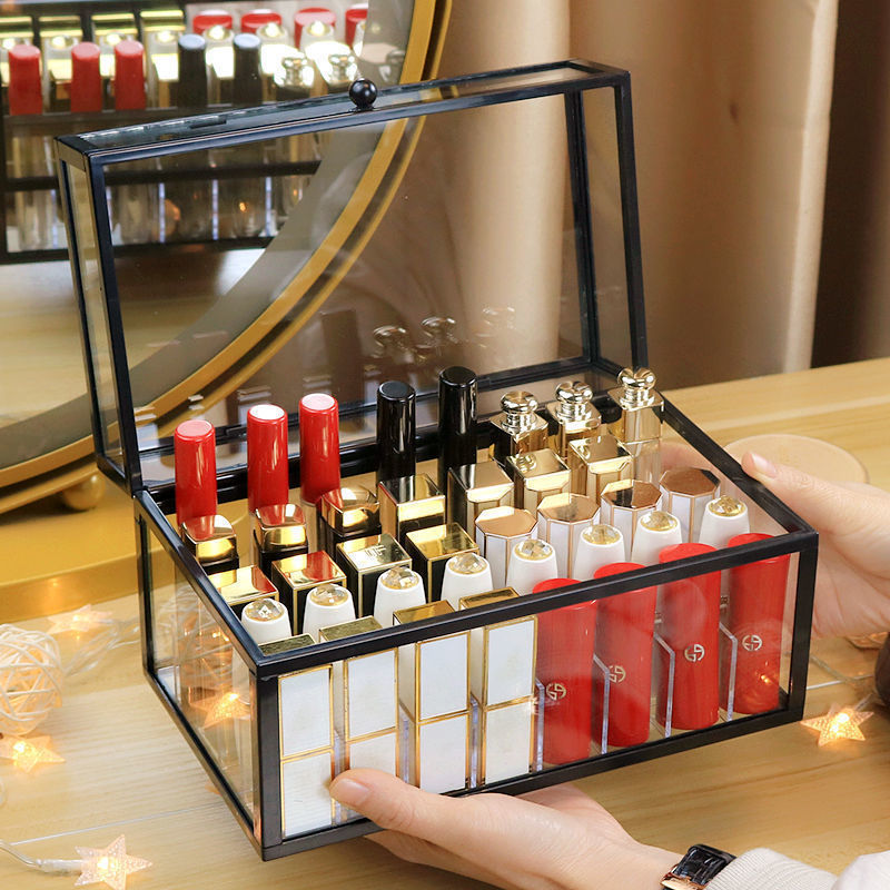 데스크탑 립스틱 스토리지 박스 드레싱 테이블 멀티 그리드 방진 대용량 인터넷 연예인 립 유약 립스틱 유리 립 유약
