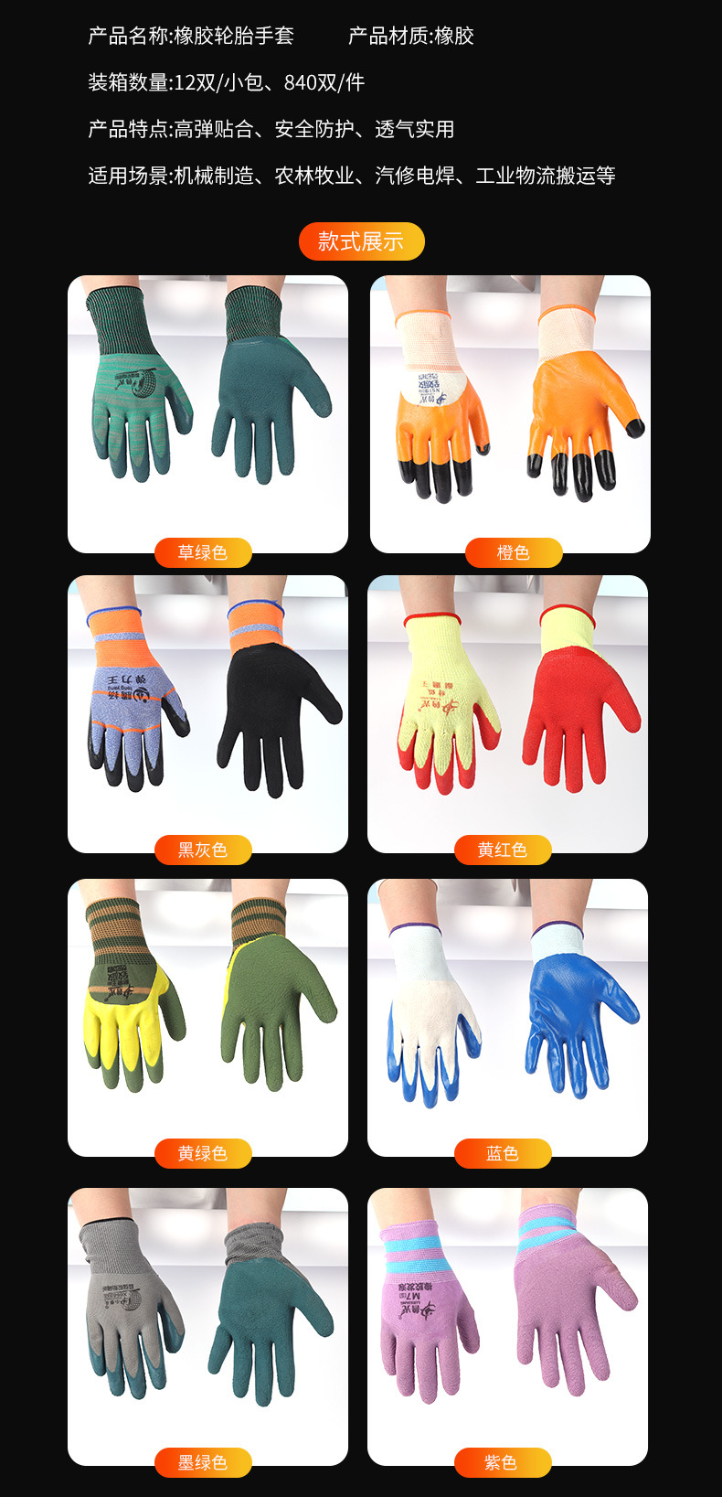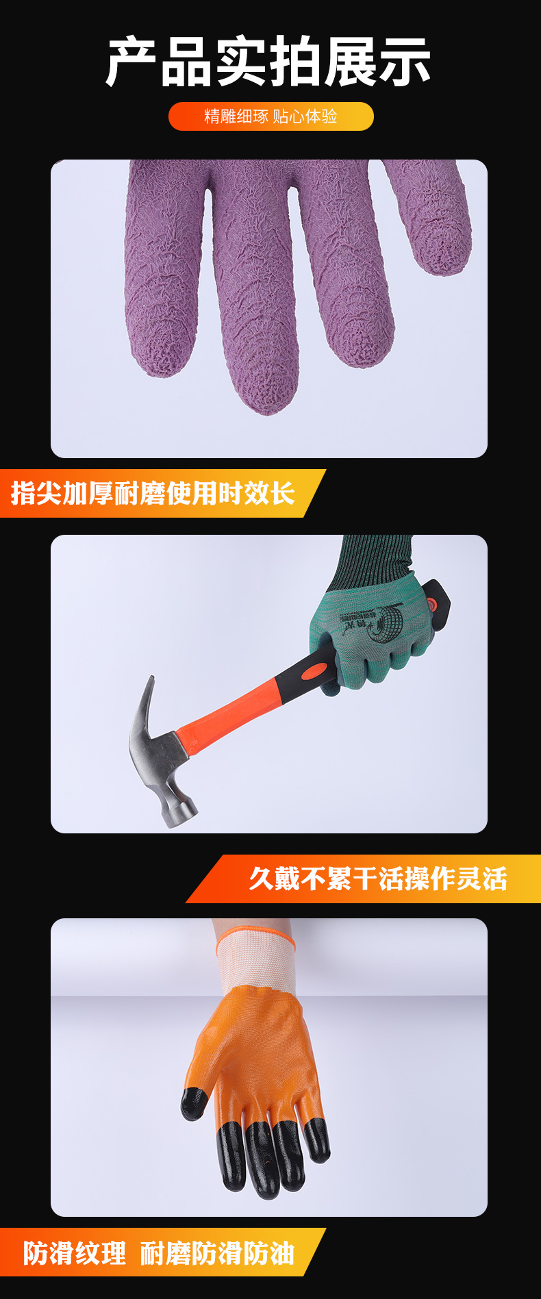 니트릴 장갑 작업용 내마모성 주름 나일론 장갑 도매 공장 미끄럼 방지 접착제 담근 작업 노동 보호 장갑스토어 가기