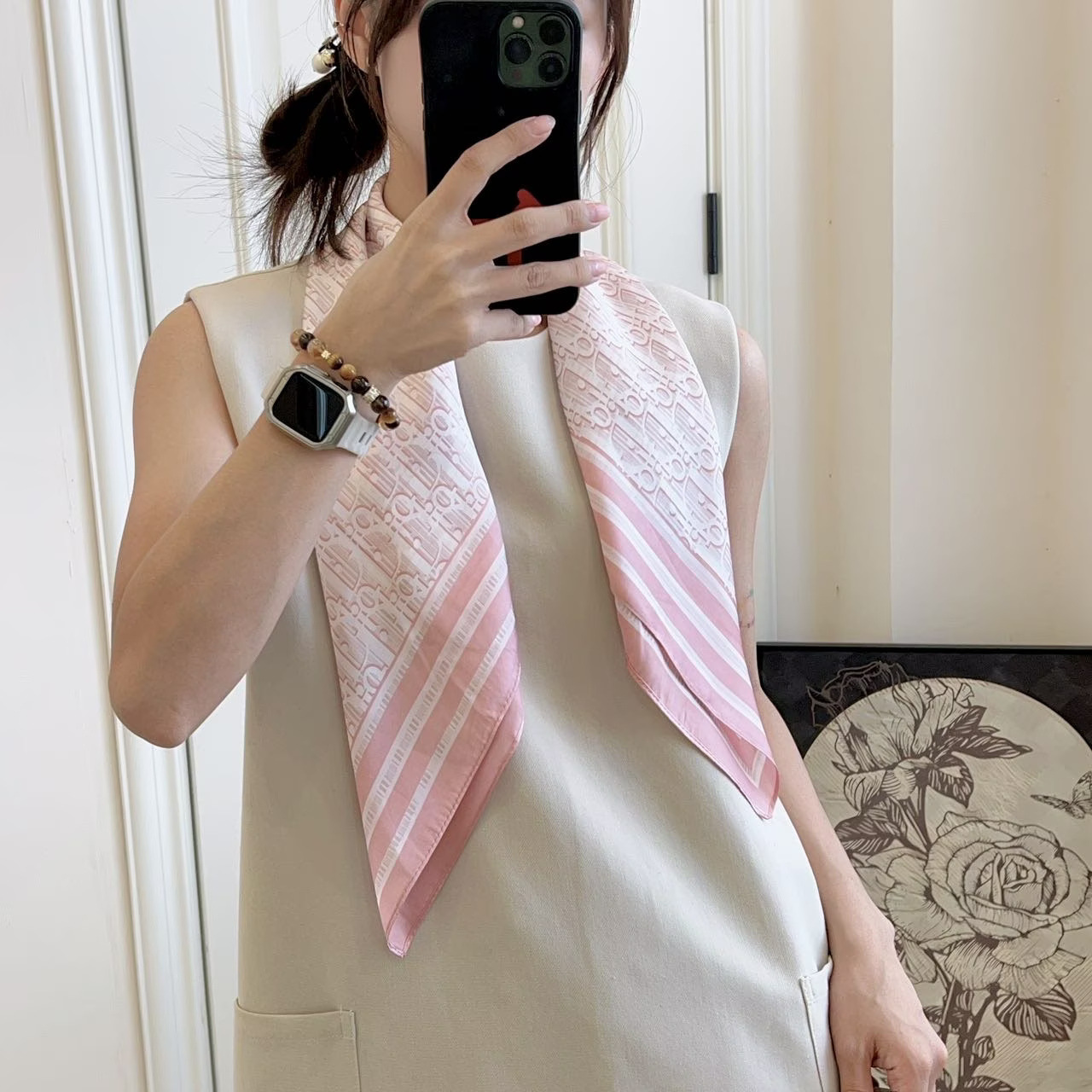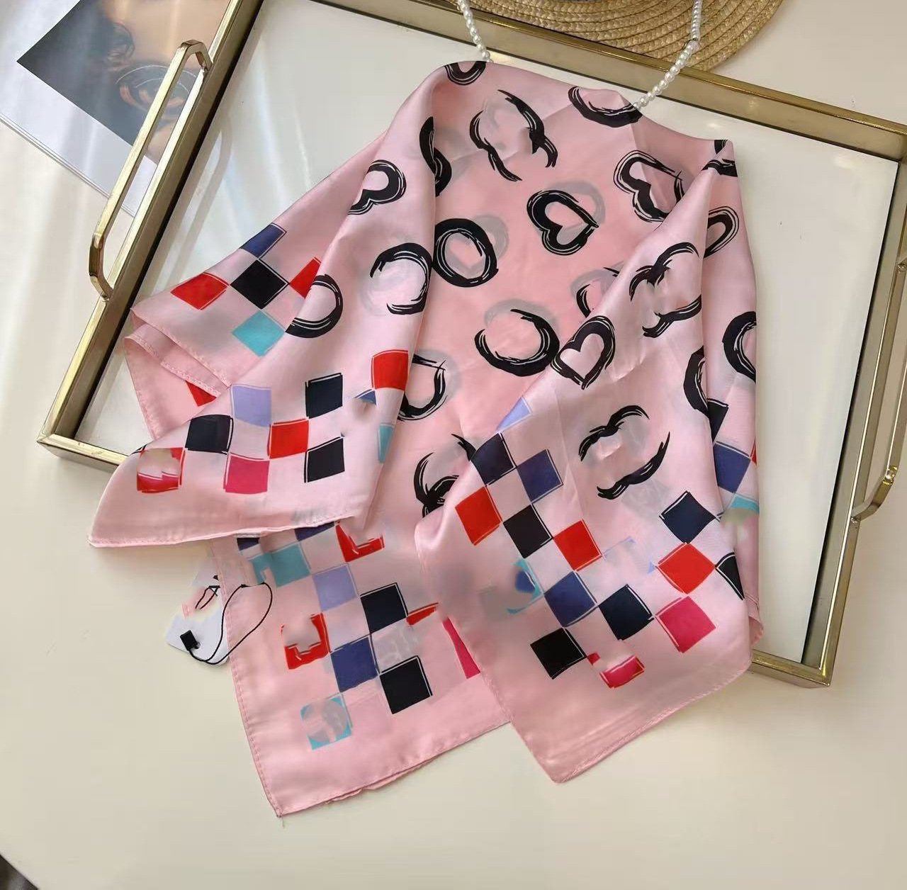 • D의 새로운 핑크 70 스퀘어 스카프
