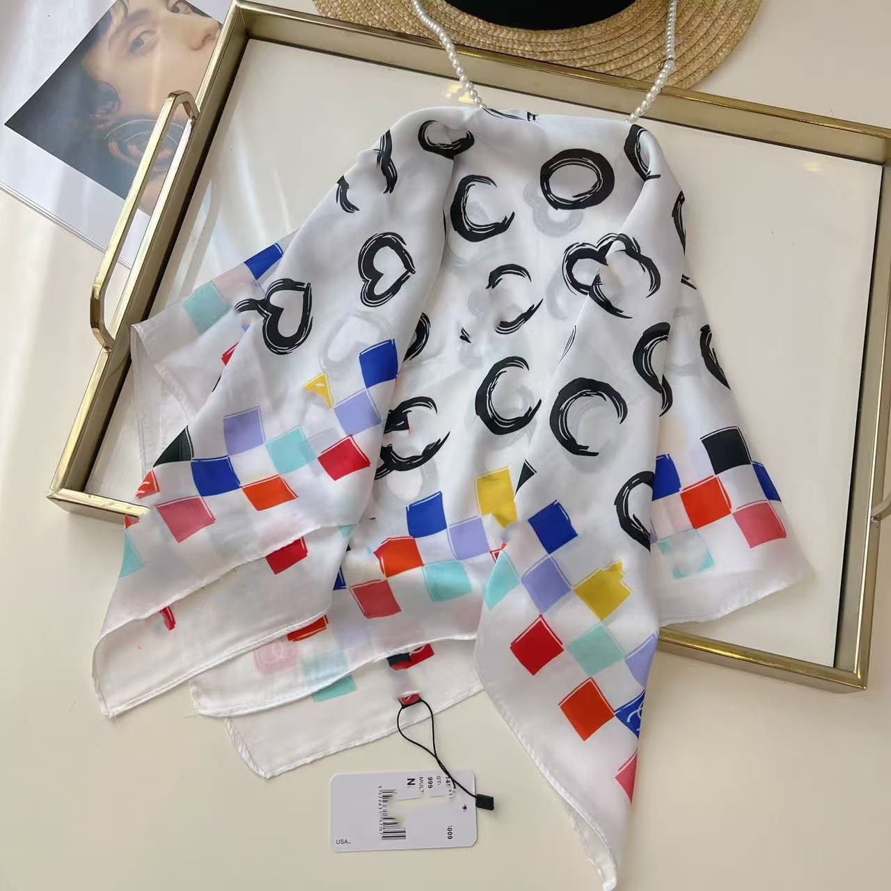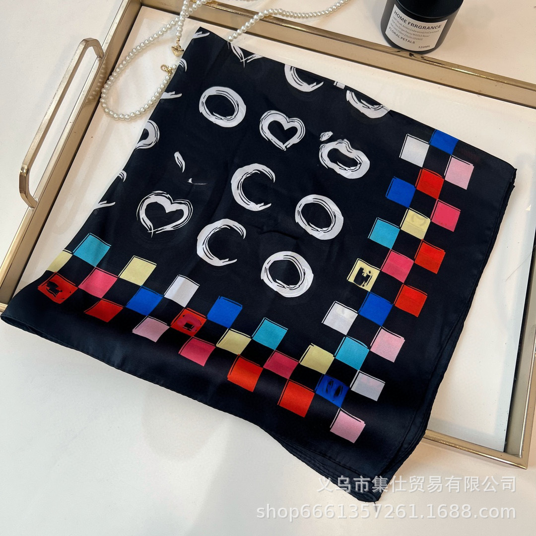 • Xiaoxiang 블랙 컬러 70 스퀘어 스카프