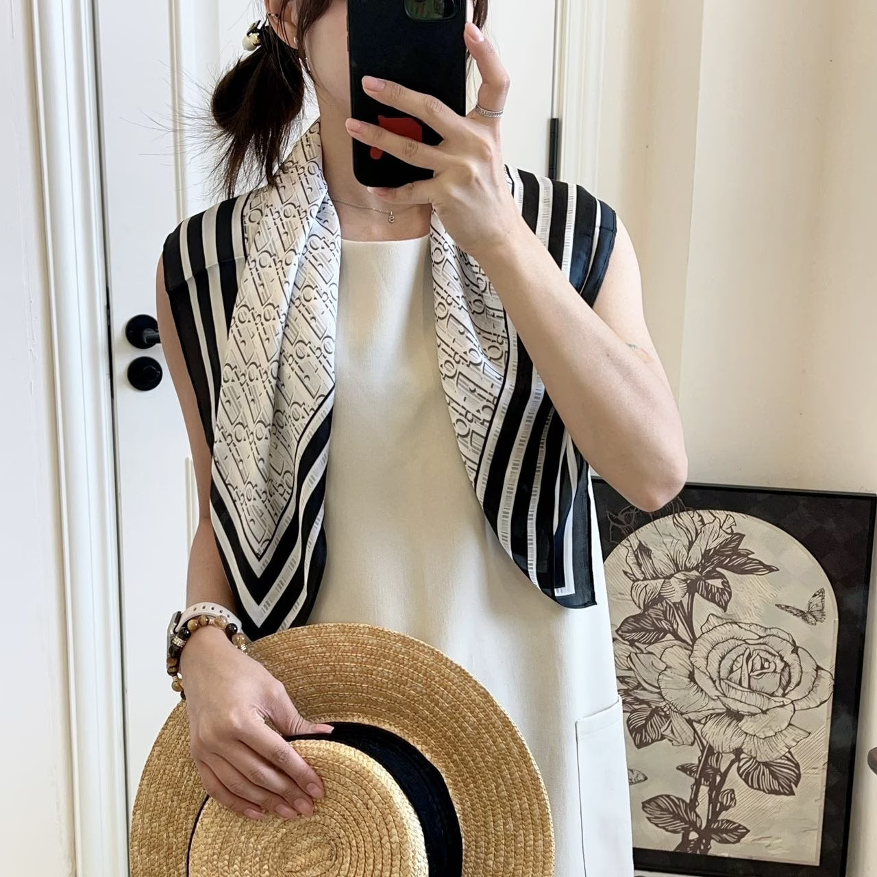 • D의 새로운 블랙 70 스퀘어 스카프