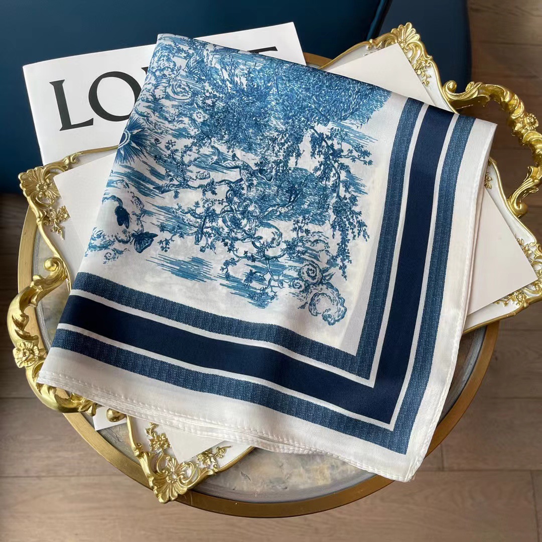 • D의 새로운 블루 70 스퀘어 스카프