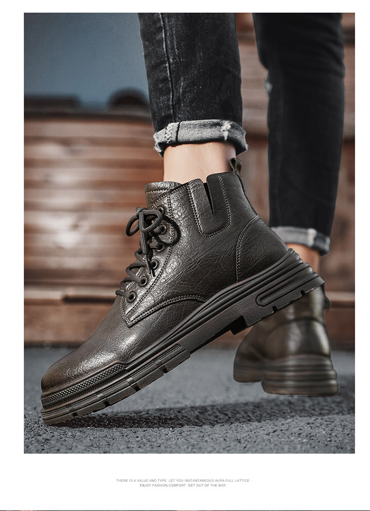 마틴 부츠 남성 영국 스타일 미드탑 레이스 업 봄, 가을 신작 남성 신발 복고풍 작업 부츠 트렌디 캐주얼 신발