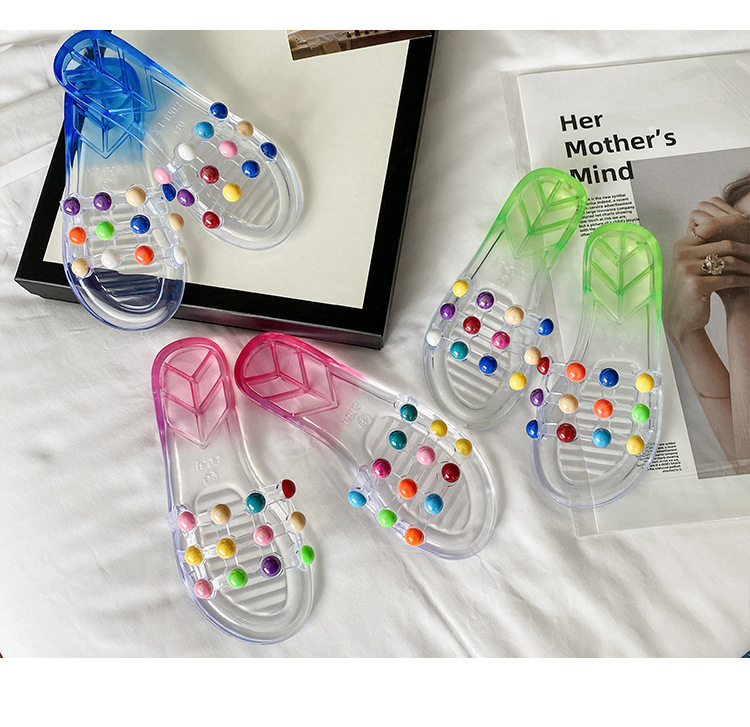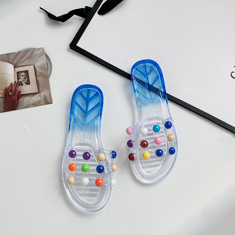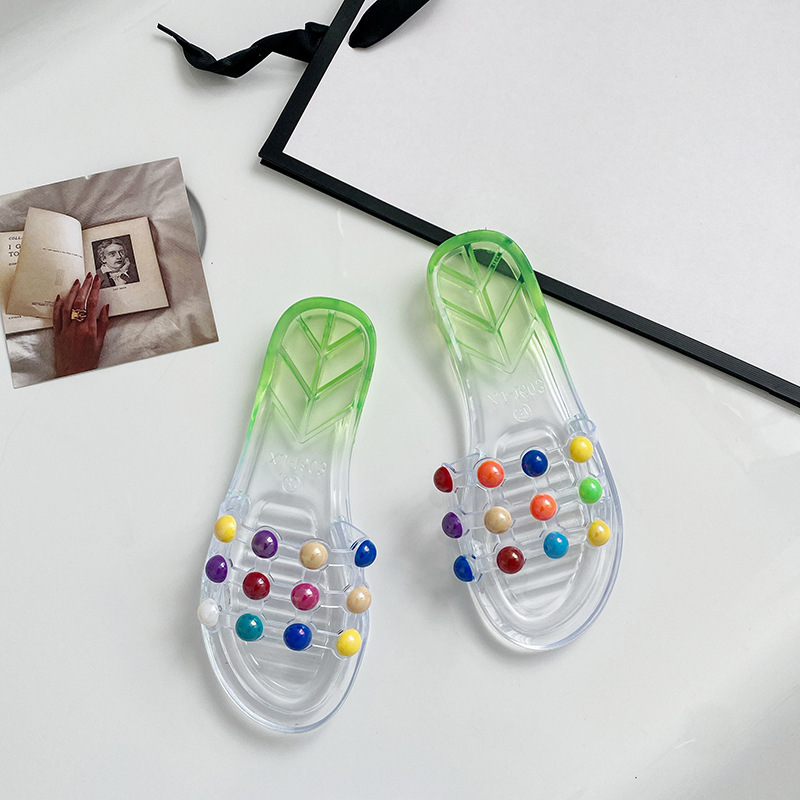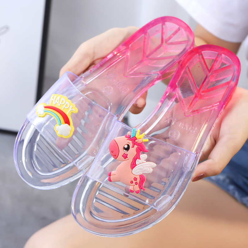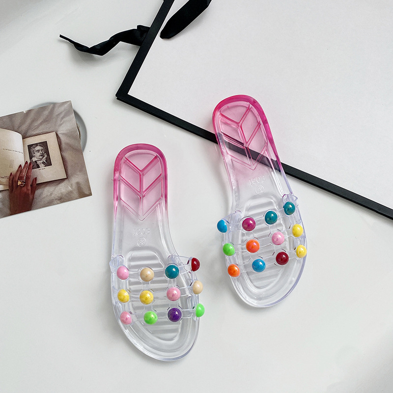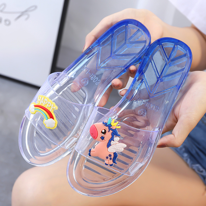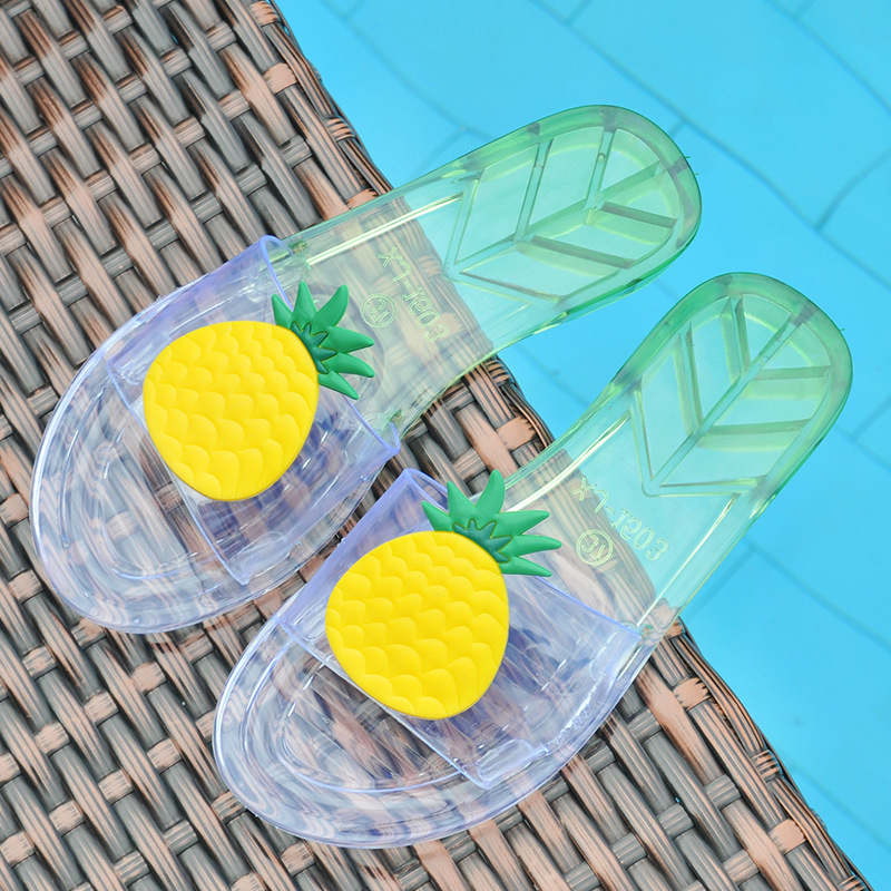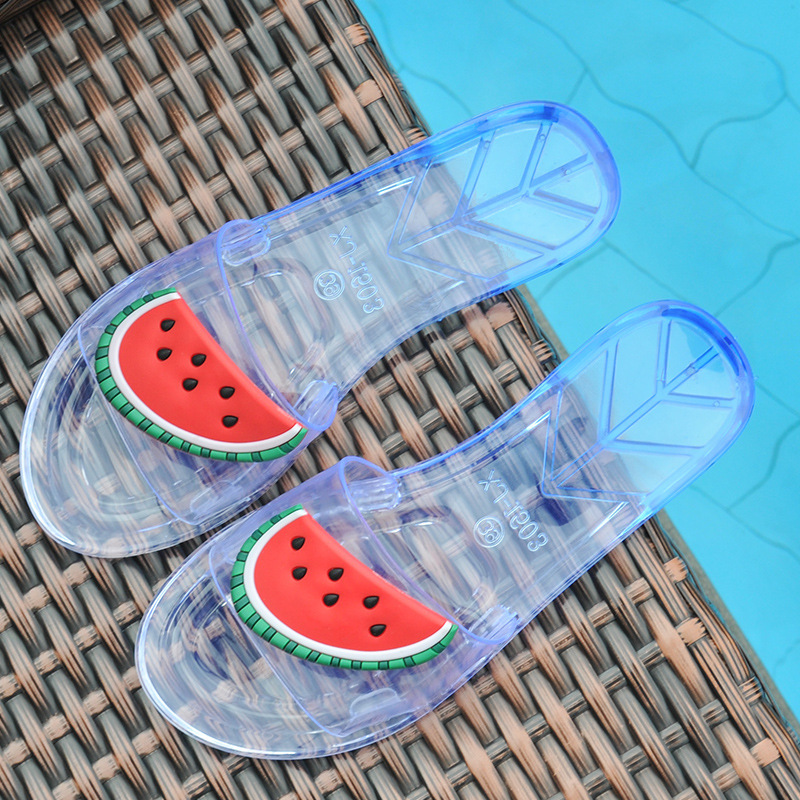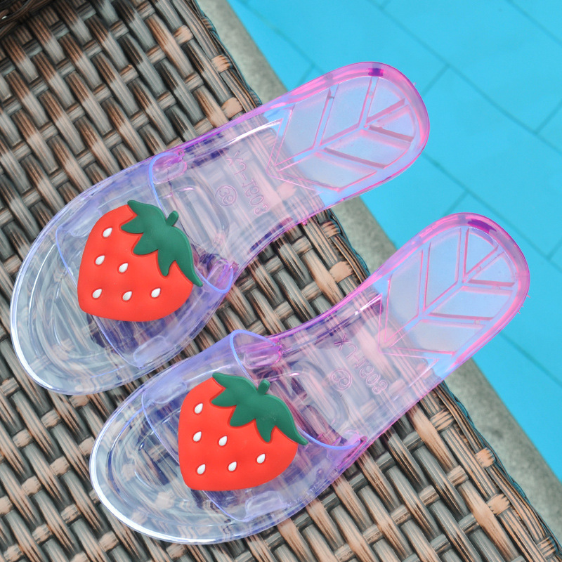슬리퍼 여성 여름 실내 및 실외 귀여운 부드러운 슬리퍼 세련된 비치 미끄럼 슬라이드 한국식 투명 과일 신발