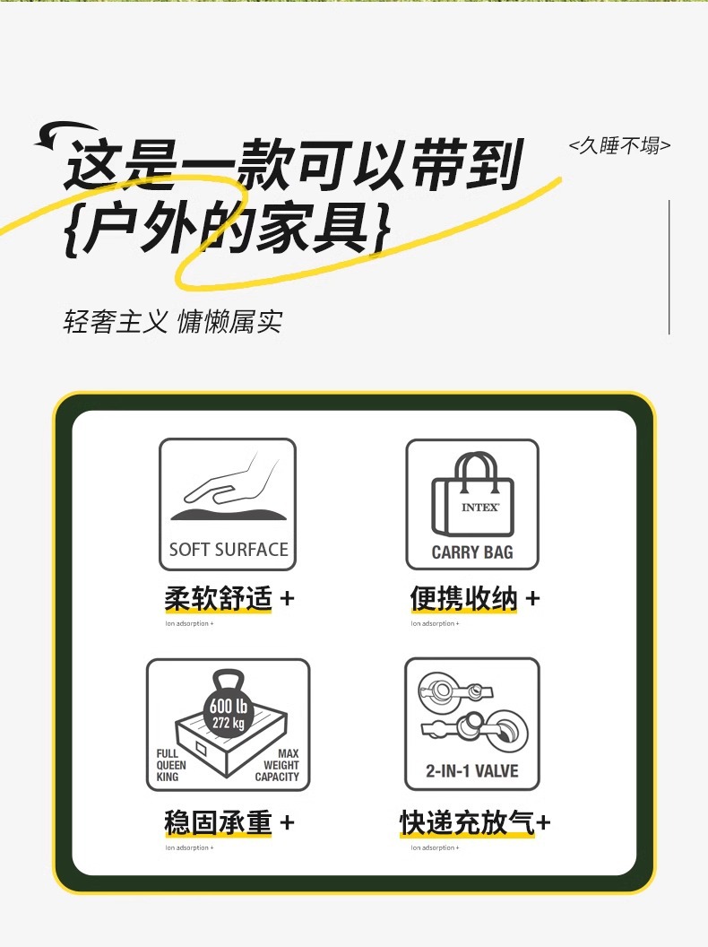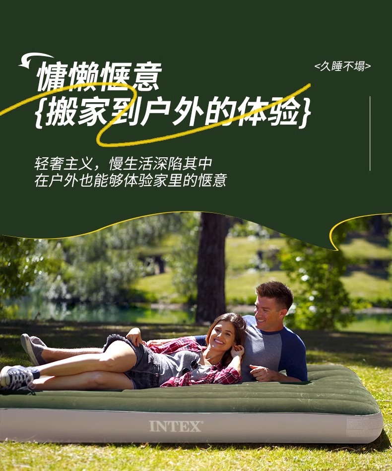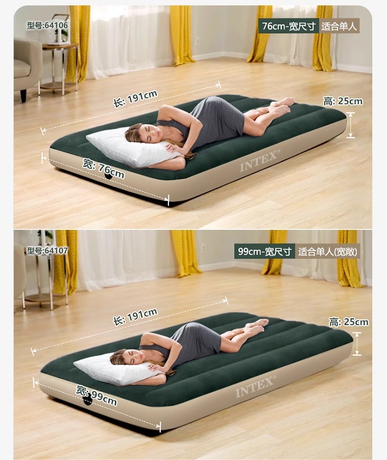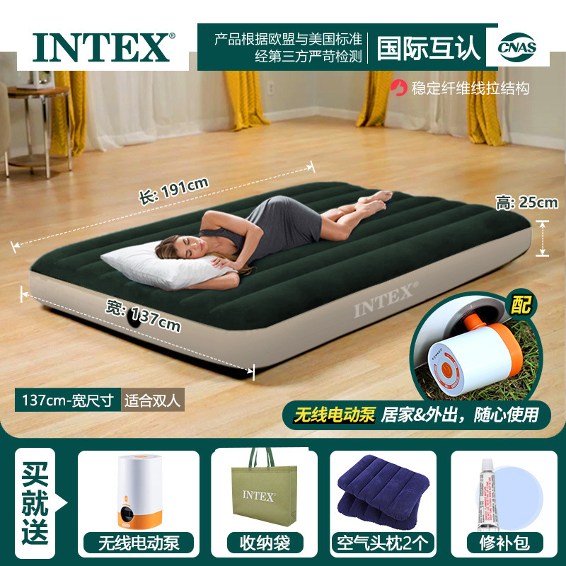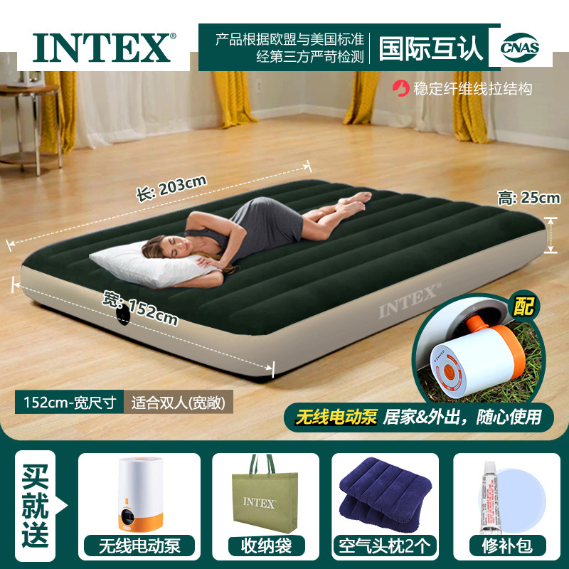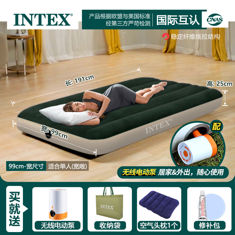 INTEX 잠금 녹색 팽창식 침대 야외 더블 에어 침대 단일 높이 두꺼운 게으른 접히는 풍선 침대스토어 가기