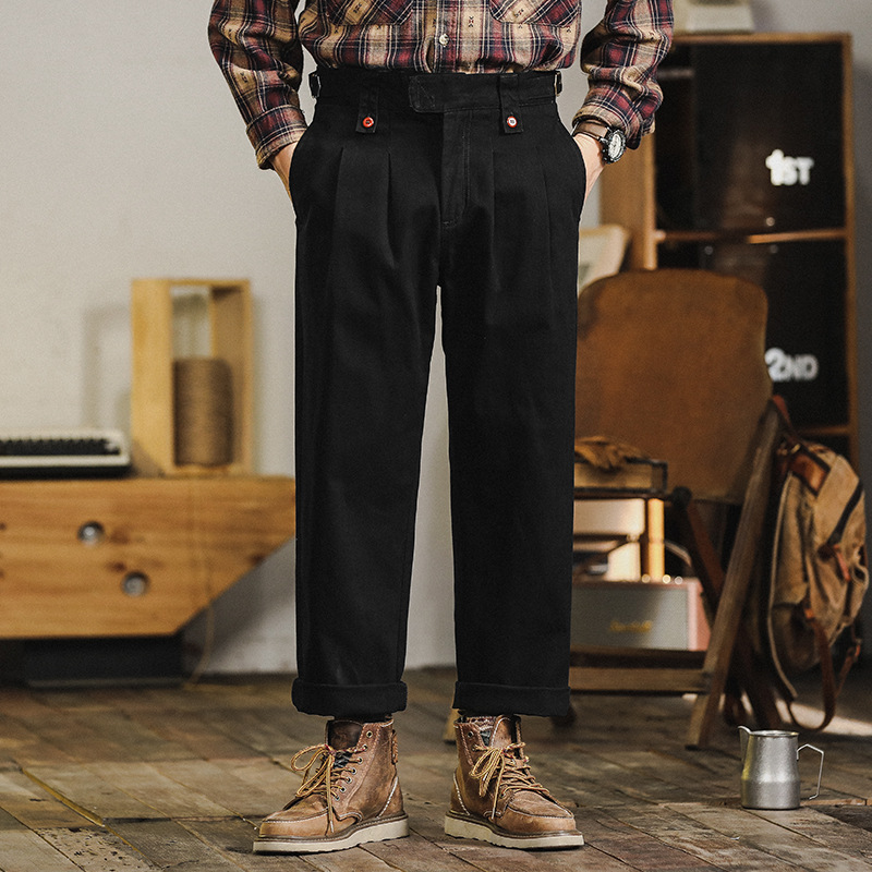 하이 엔드 아메리칸 레트로 캐주얼 바지 남자의 새로운 영국 레트로 실지 루즈 스트레이트 오버롤스토어 가기