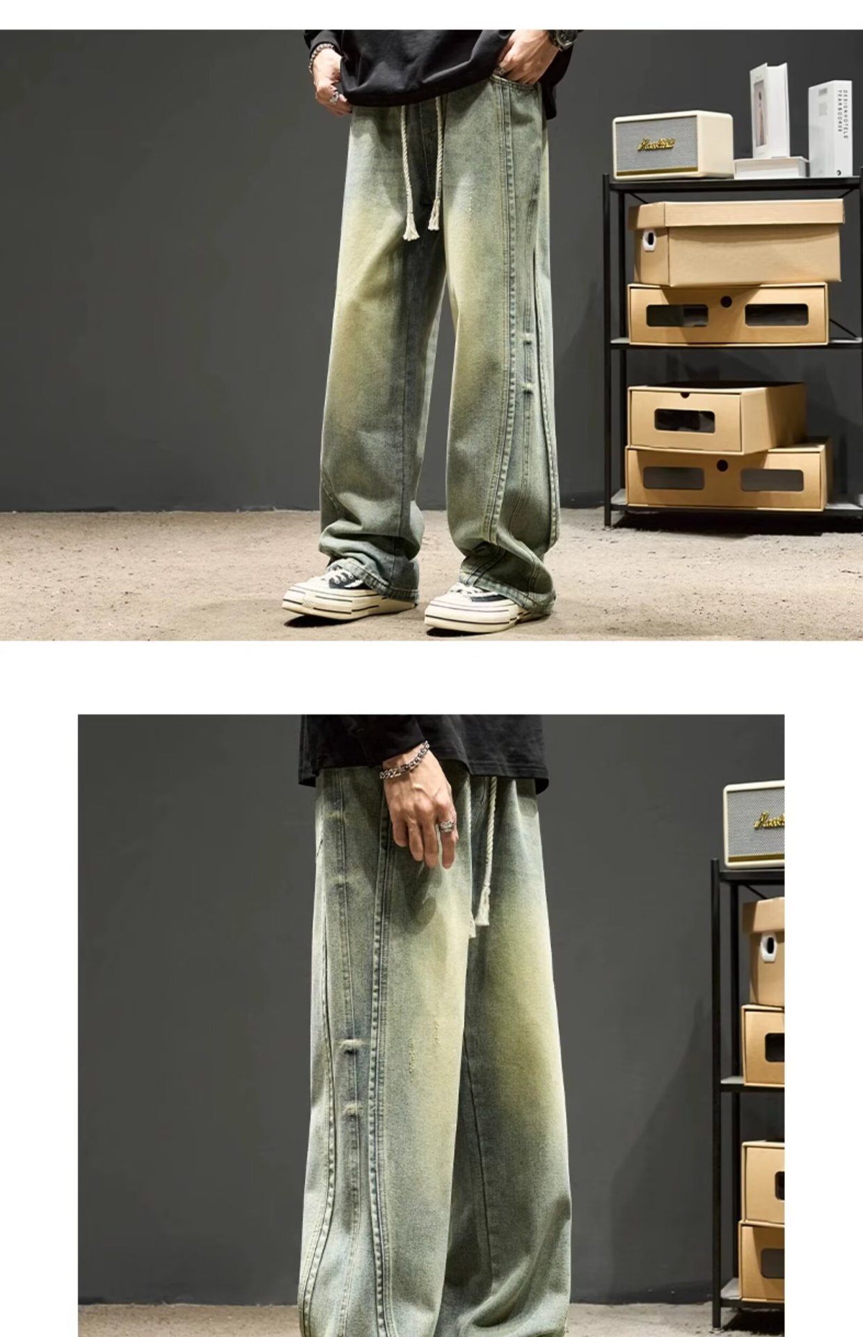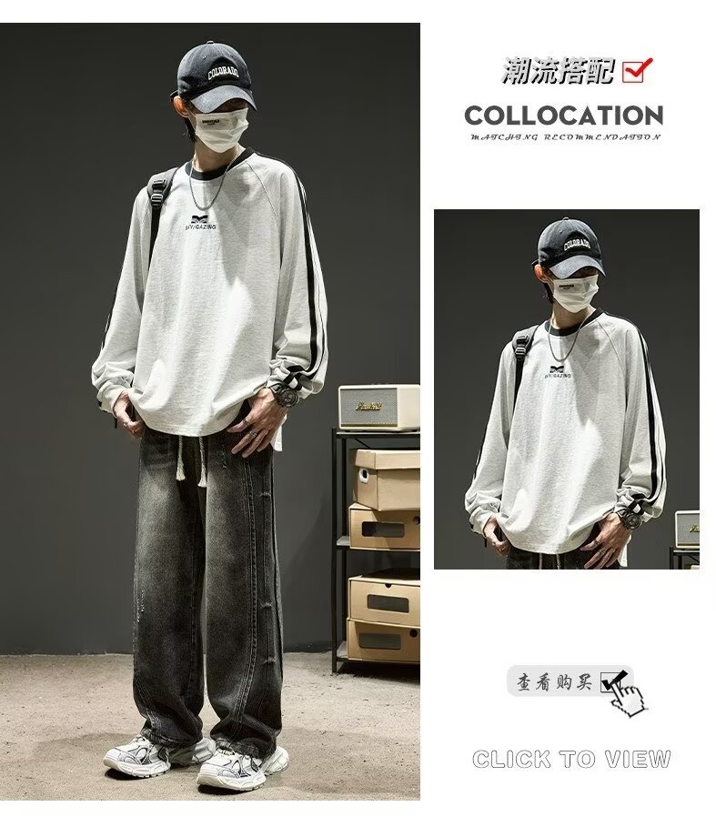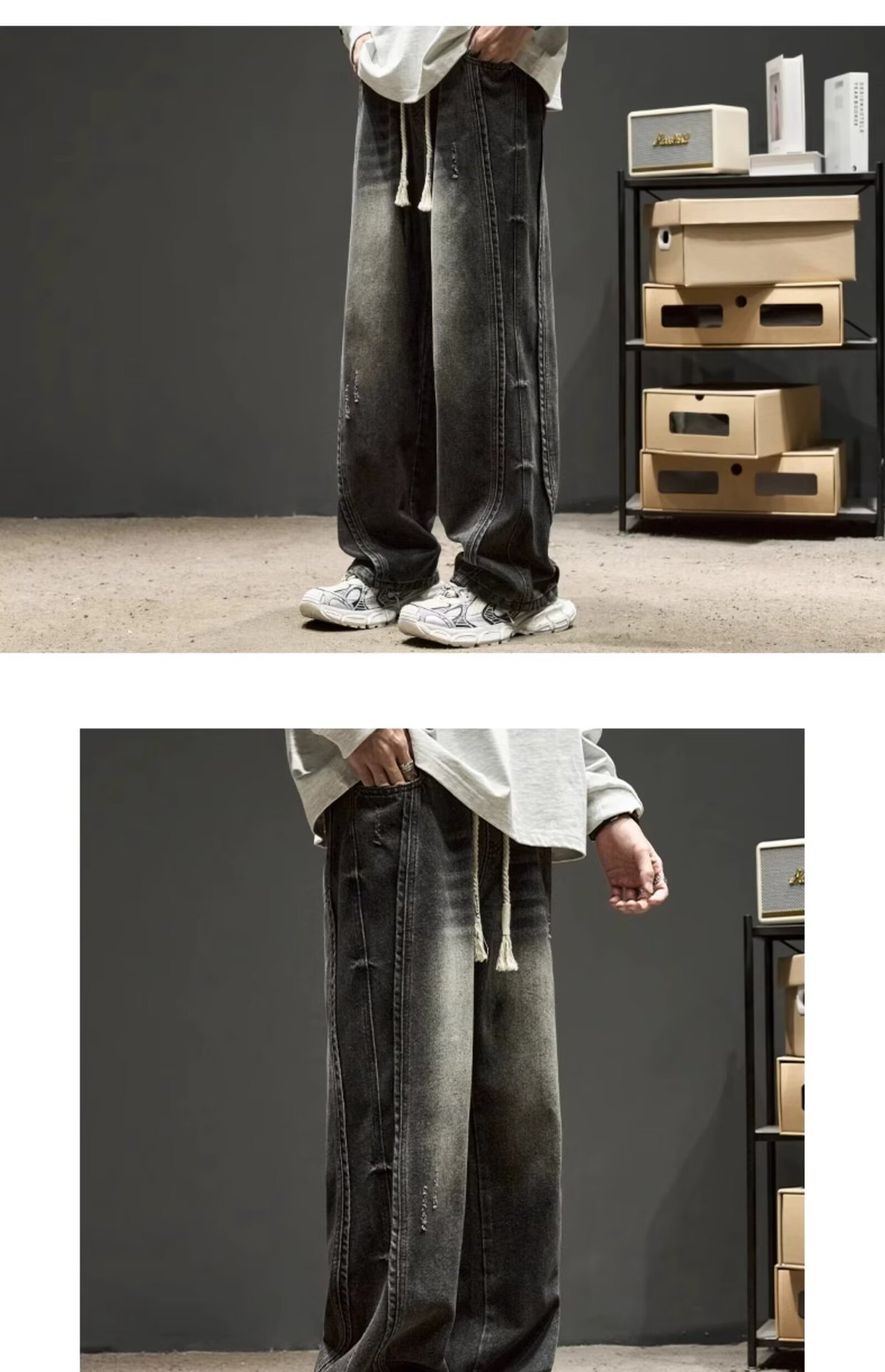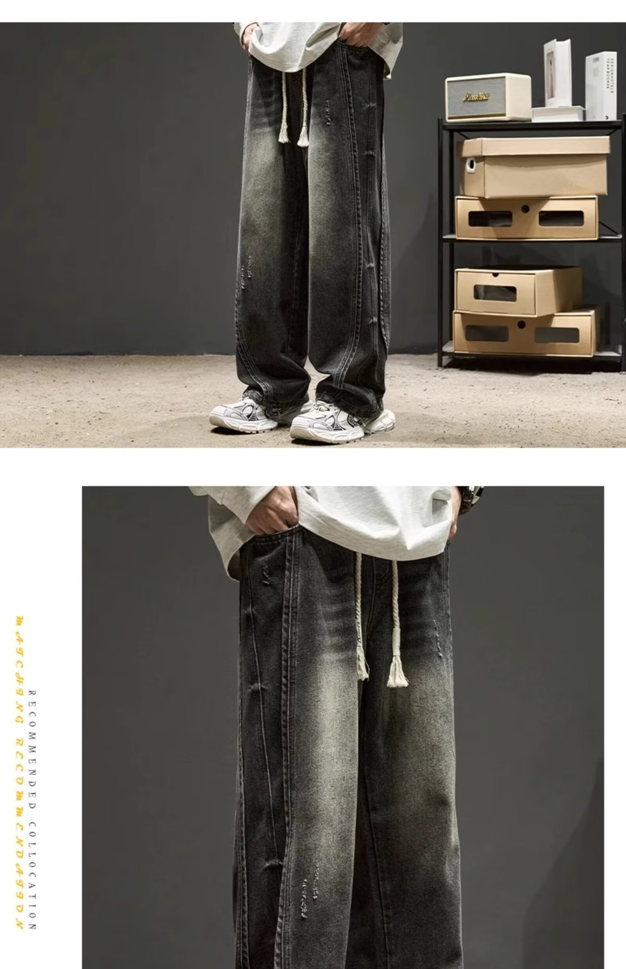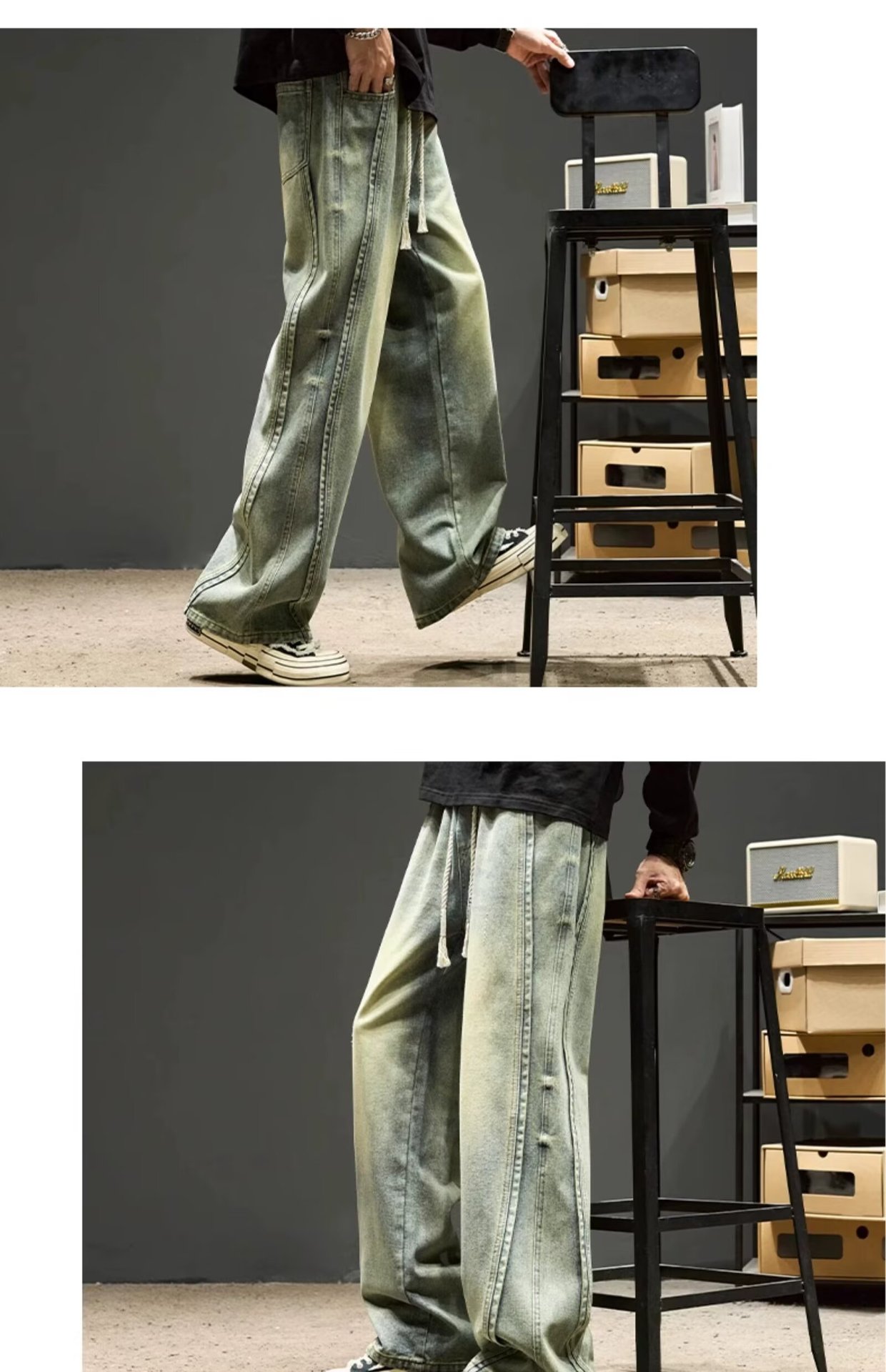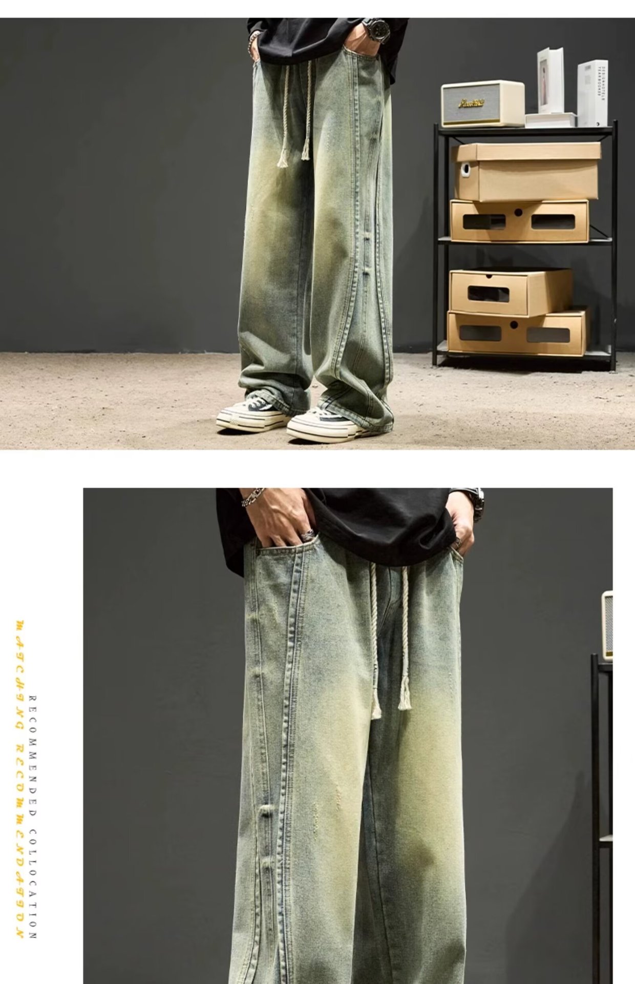 국경 간 일본 스타일 빈티지 바느질 세탁 청바지 남성용 트렌디 올매치 느슨하고 잘 생긴 다리 바지스토어 가기