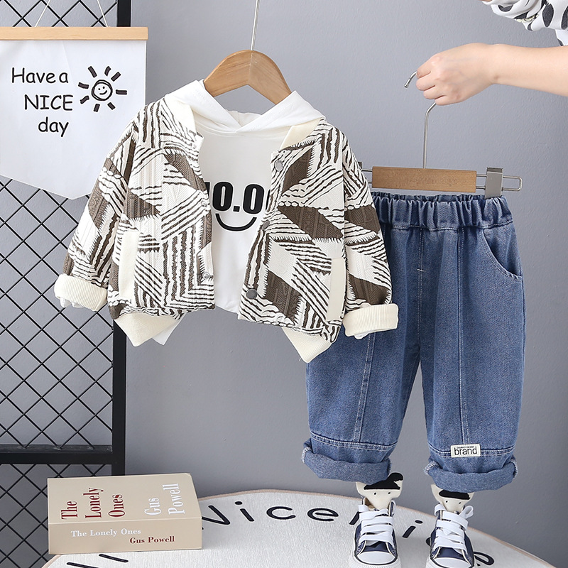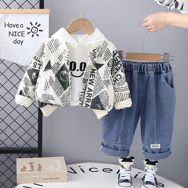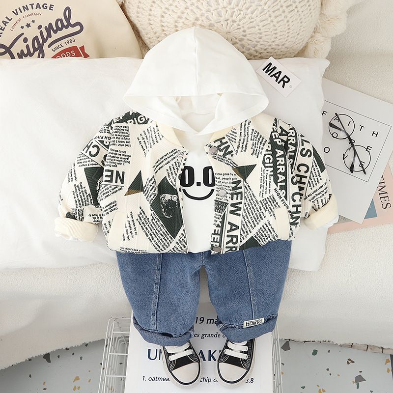 어린이 봄 2025 새로운 남성 아기 외국식 세트 어린이 자카드 야구 세트 3 피스 아기 스포츠웨어