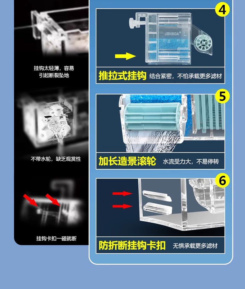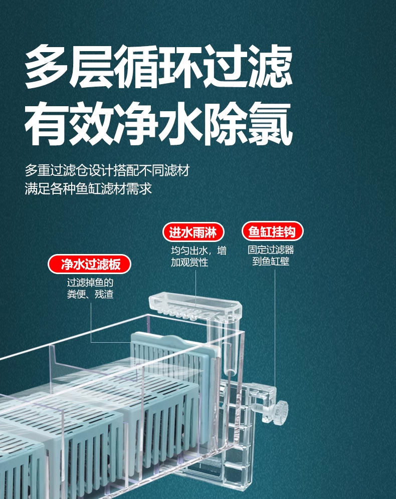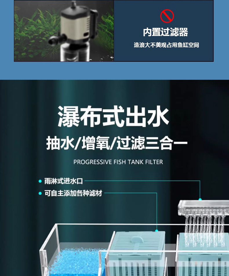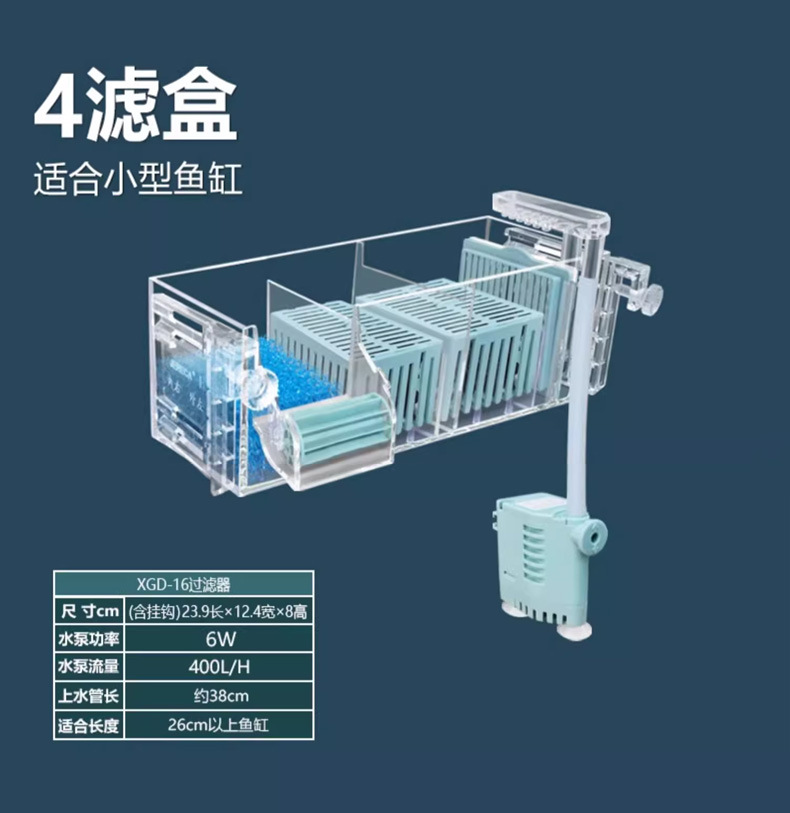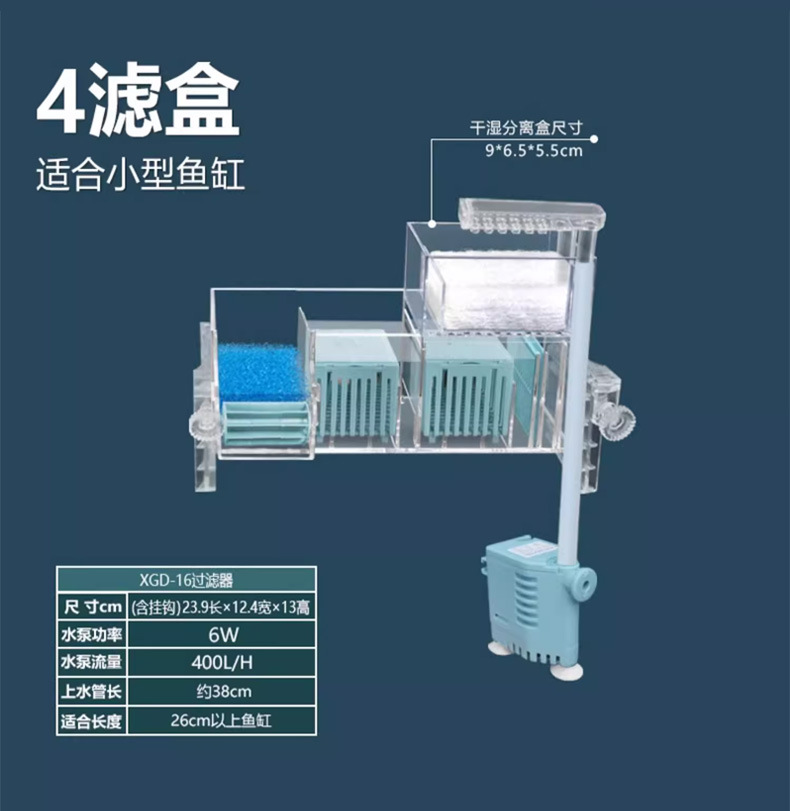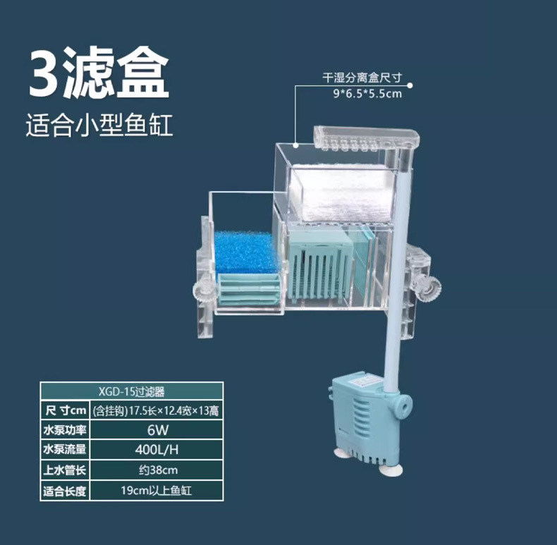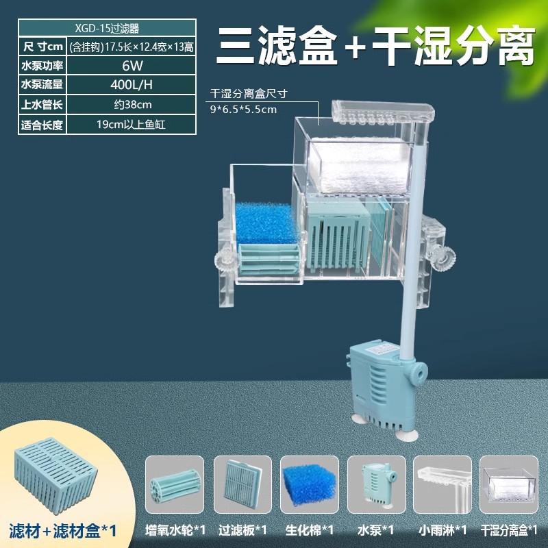 어항 벽걸이 필터 3 대 1 저수위 거북이 탱크 상부 필터 산소 증가 순환 외부 드립 박스