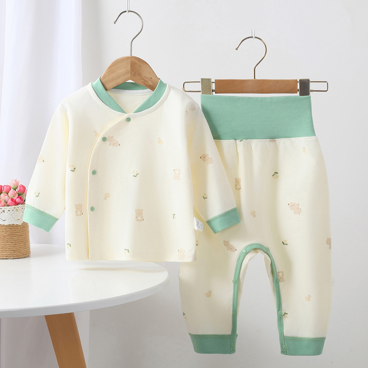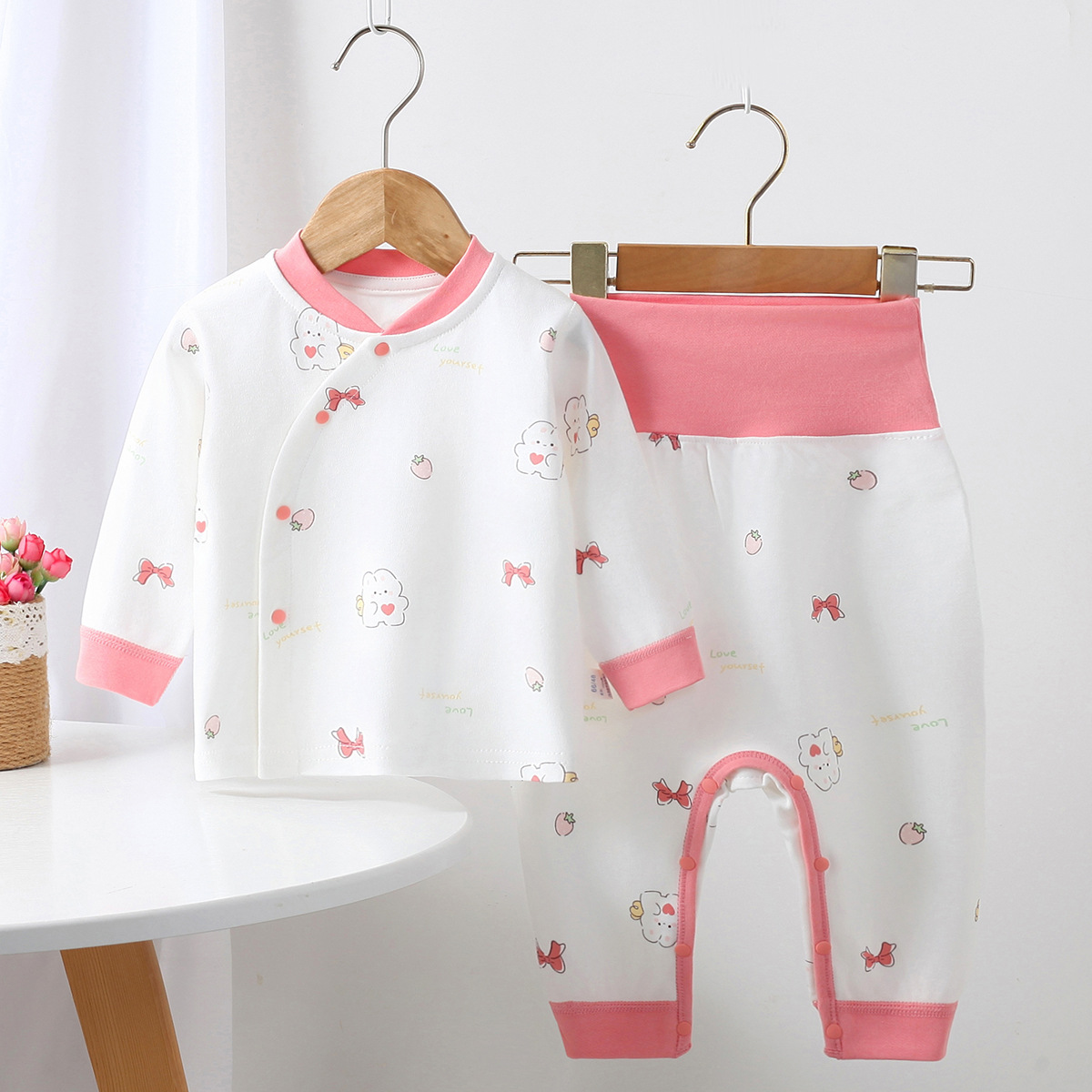 소년 소녀를위한 아기 속옷 세트 사계절 가을 옷 높은 허리 투피스 옷 아기 집 옷스토어 가기
