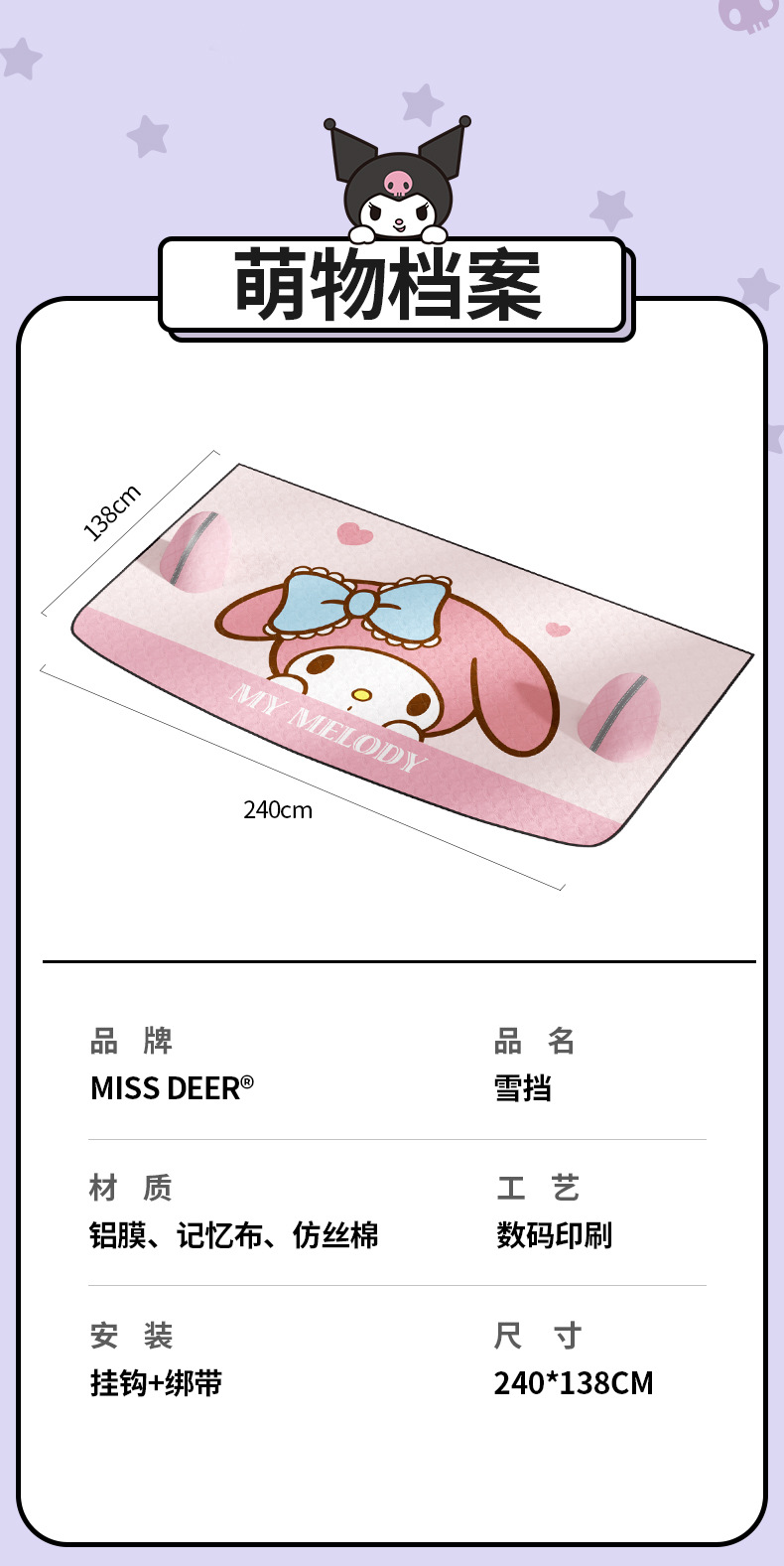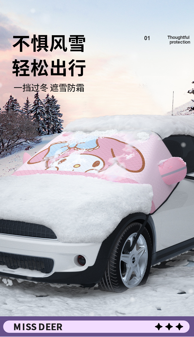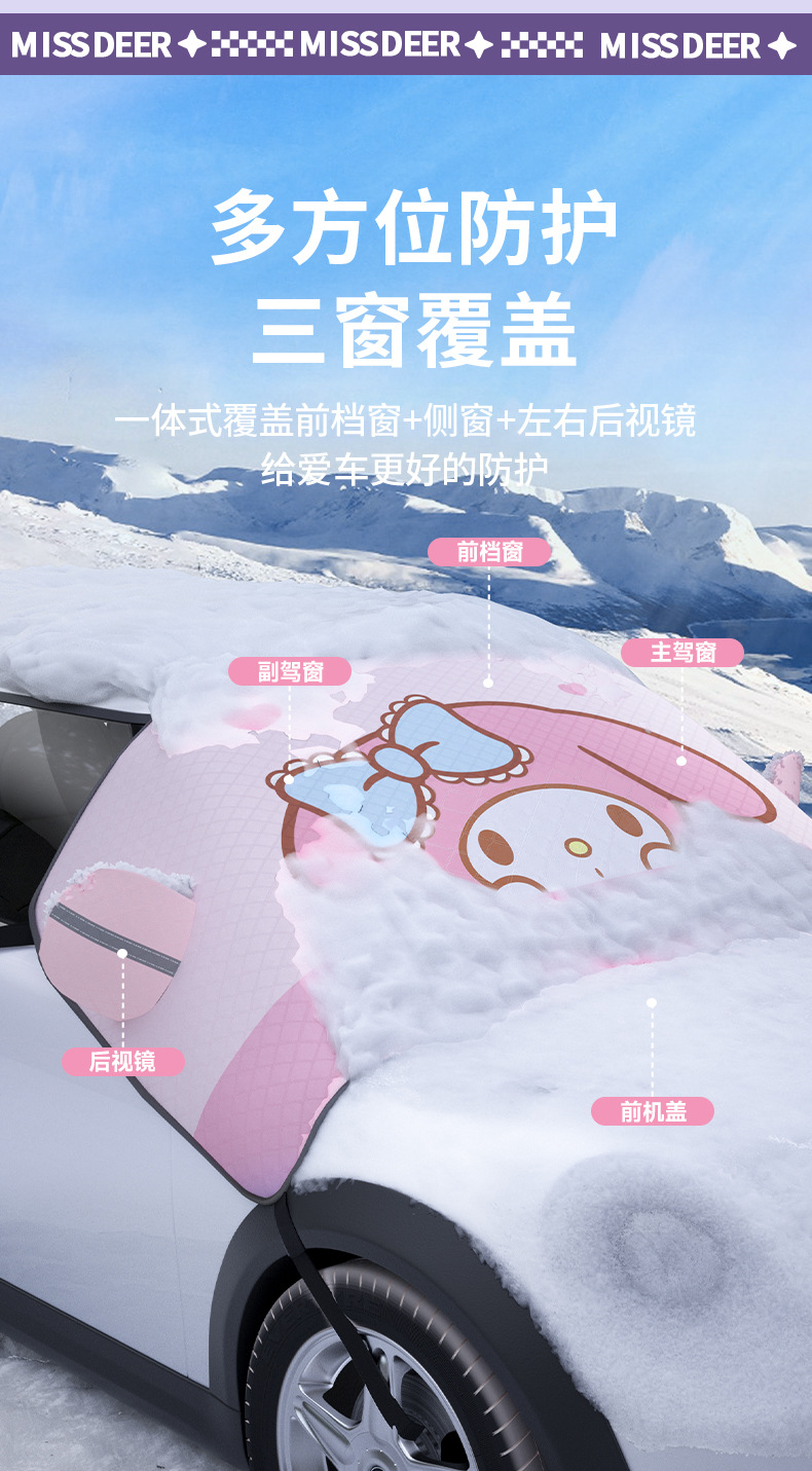 산리오 스노우 커버 자동차 앞 유리 부동액 커버 스노우 커버 겨울 두꺼운 자동차 의류 앞 유리 스노우 커버