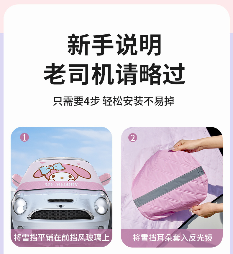 산리오 스노우 커버 자동차 앞 유리 부동액 커버 스노우 커버 겨울 두꺼운 자동차 의류 앞 유리 스노우 커버스토어 가기