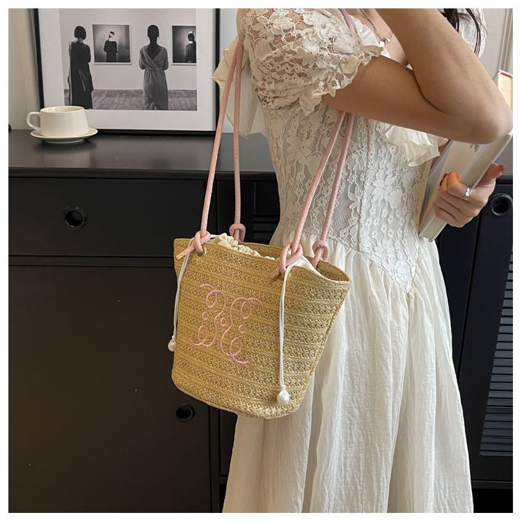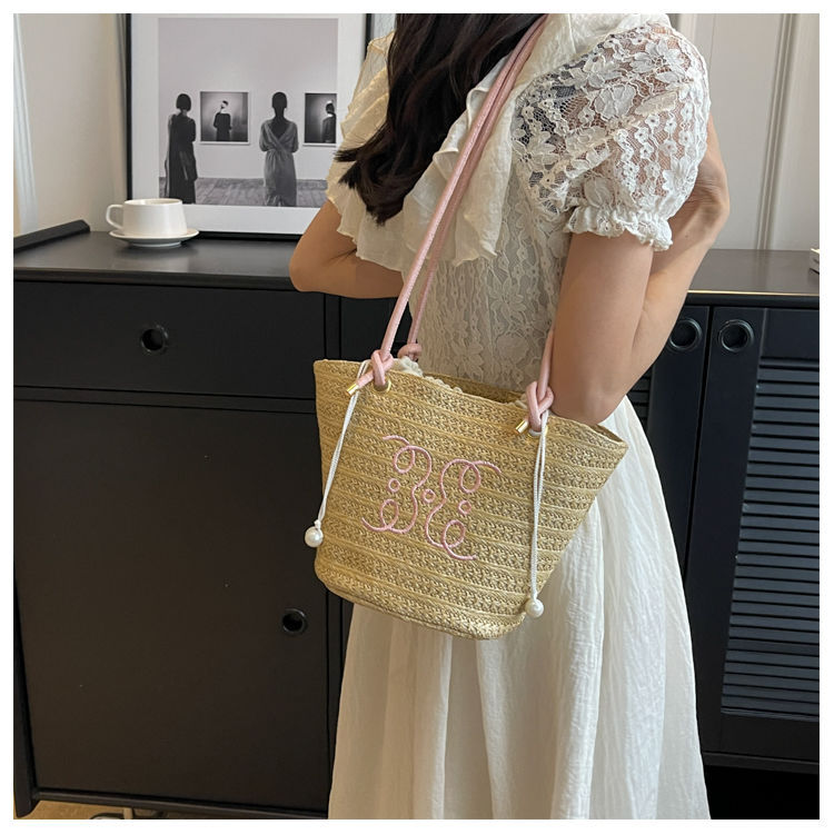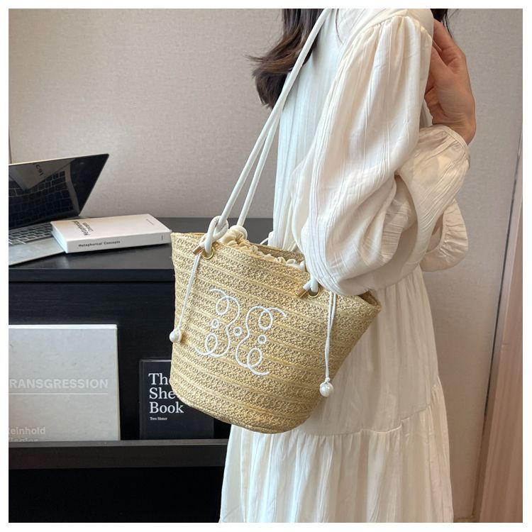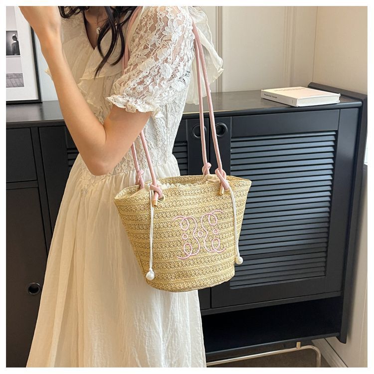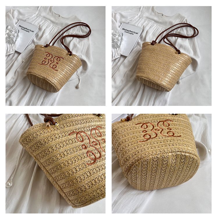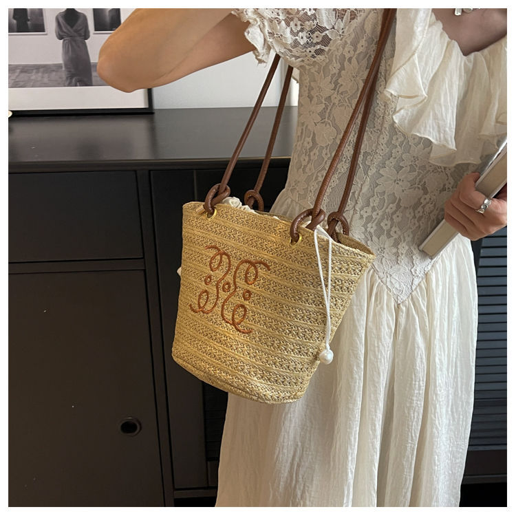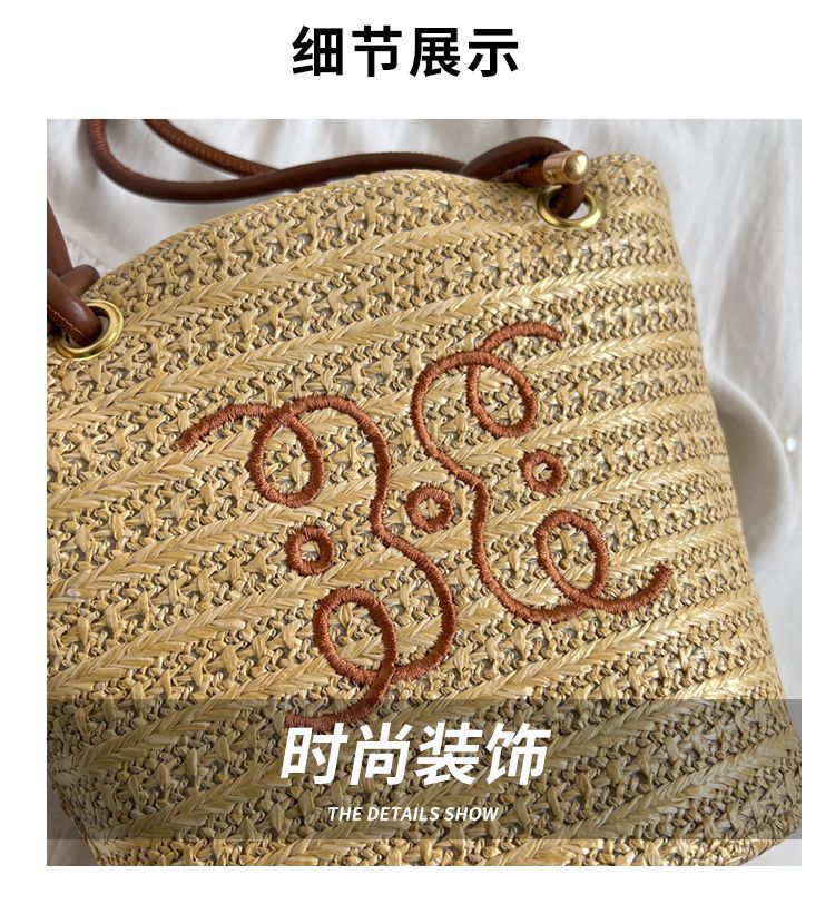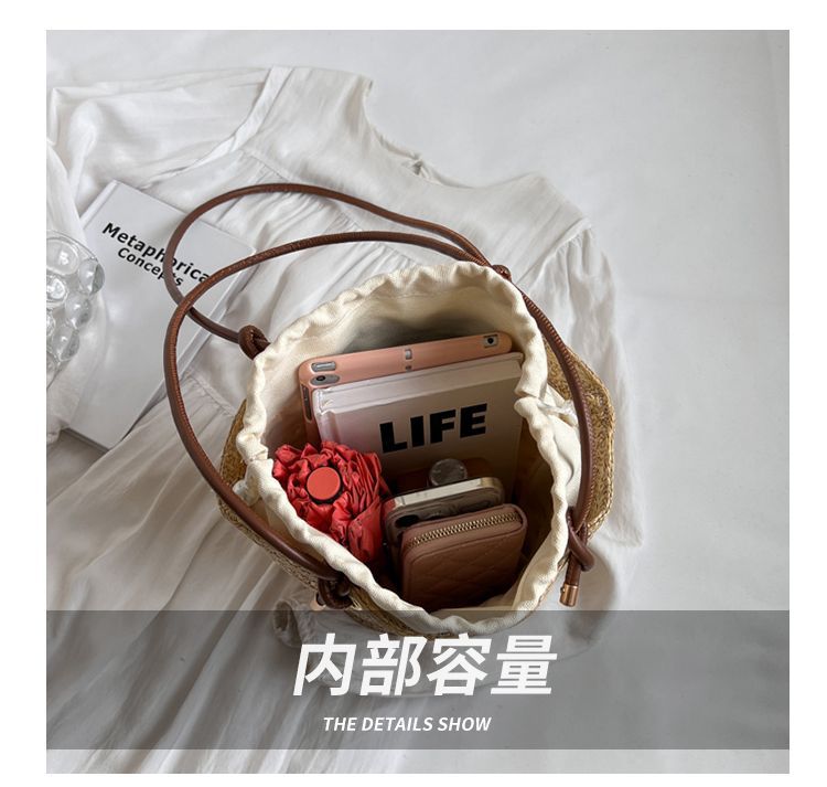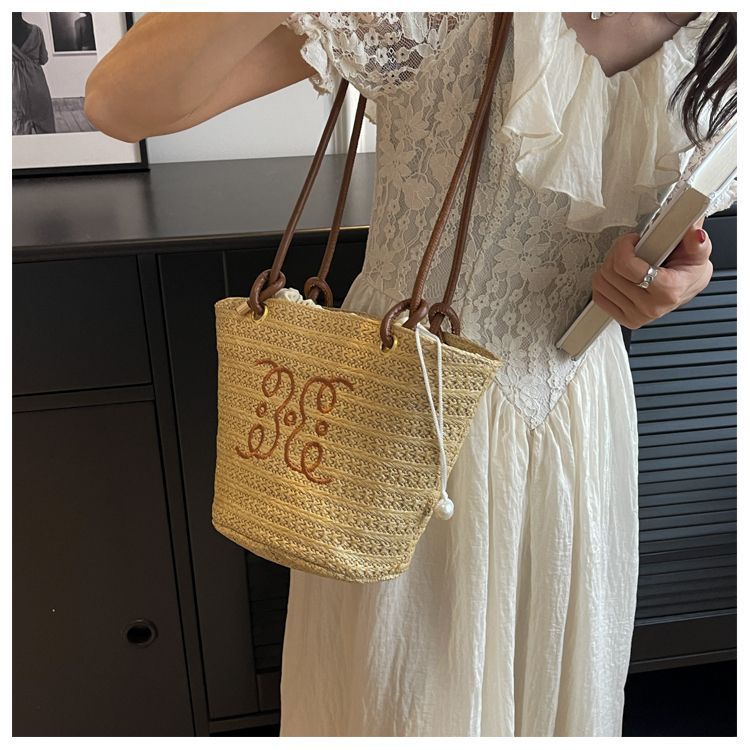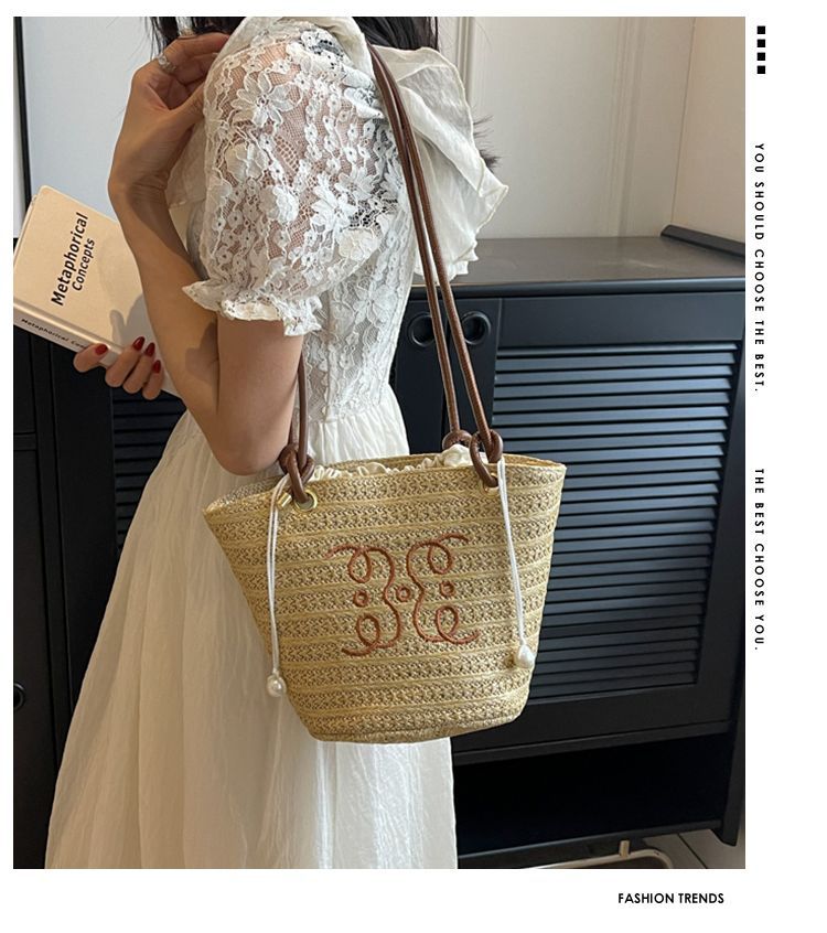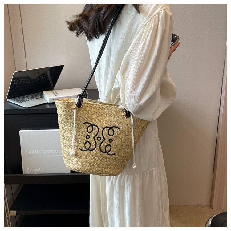 여성용 숲 스타일 밀짚 가방 2025 새로운 유행 패션 질감 틈새 겨드랑이 가방 짠 가방 복고풍 토트 백스토어 가기