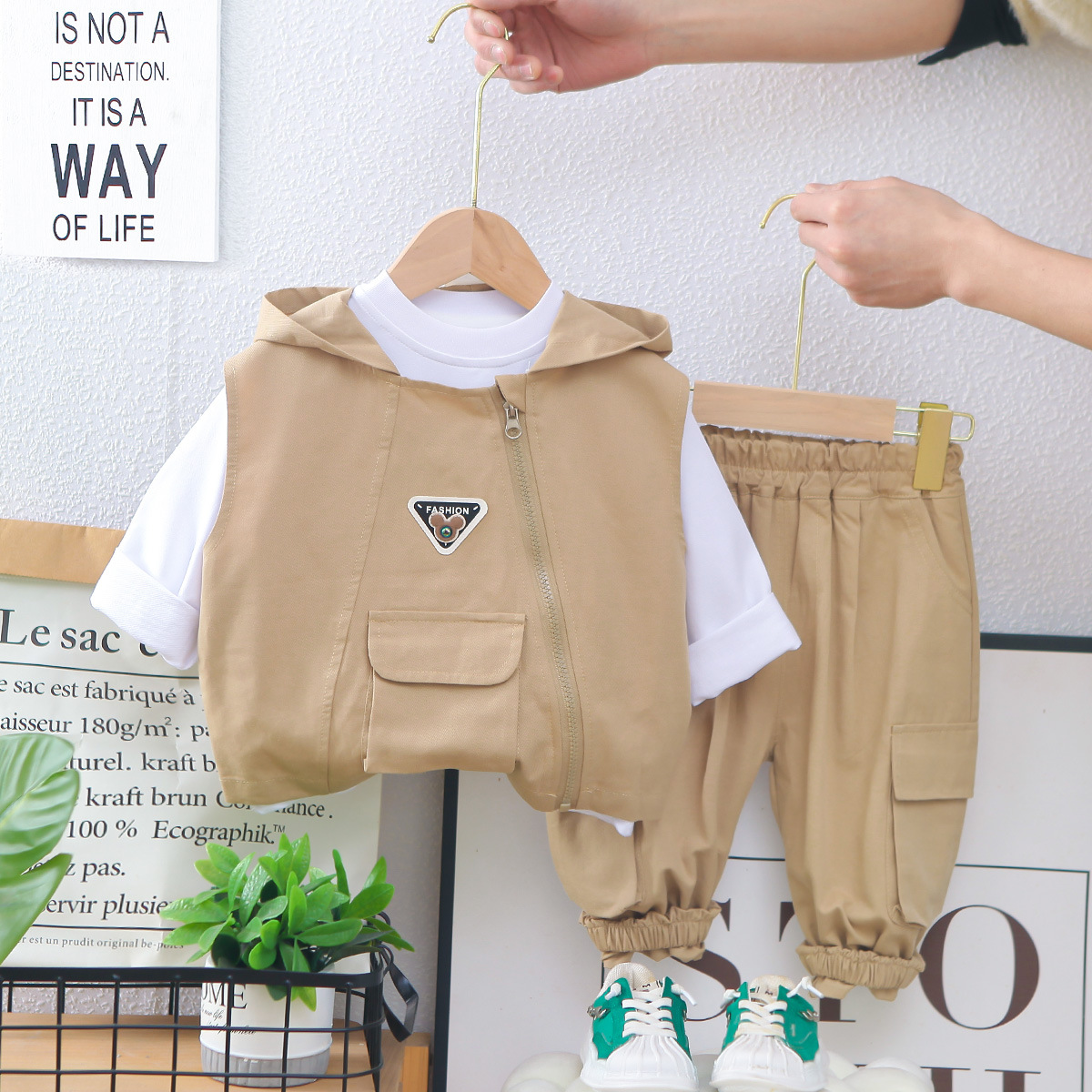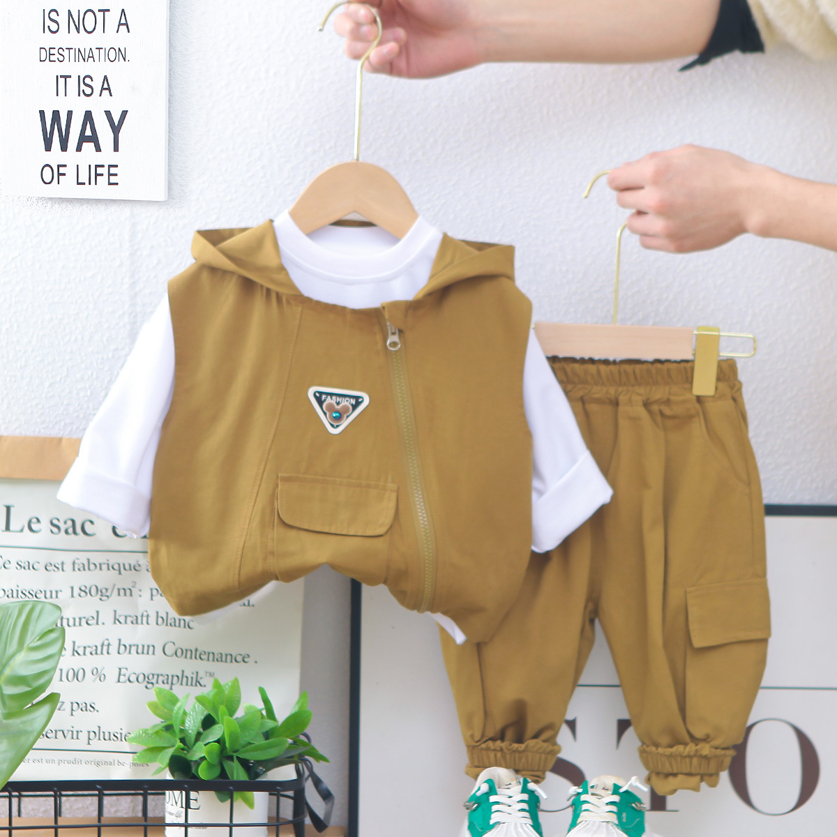 소년 봄 가을 세트 2025 새로운 아기 봄 단색 툴링 역 삼각형 조끼 3 피스 한국 어린이스토어 가기