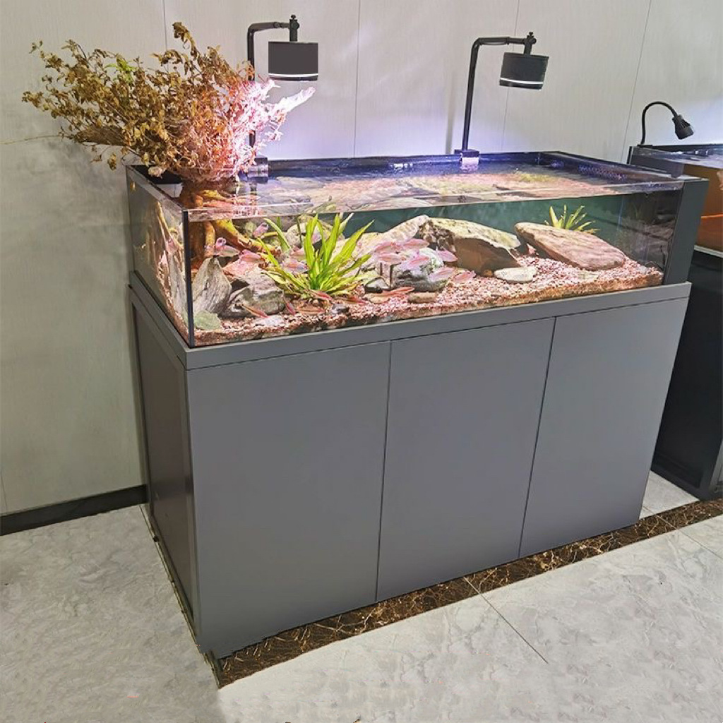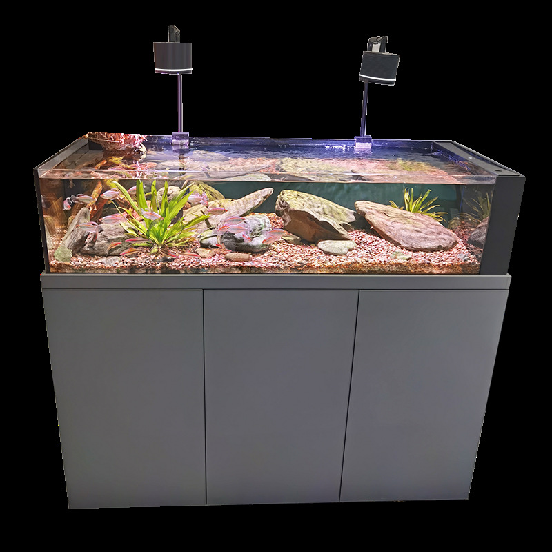 스트림 어항 새로운 거실 수생 식물 바닥 필터 어항 슈퍼 화이트 유리 사이드 오버플로 생태 해양 어항 스트림 어항