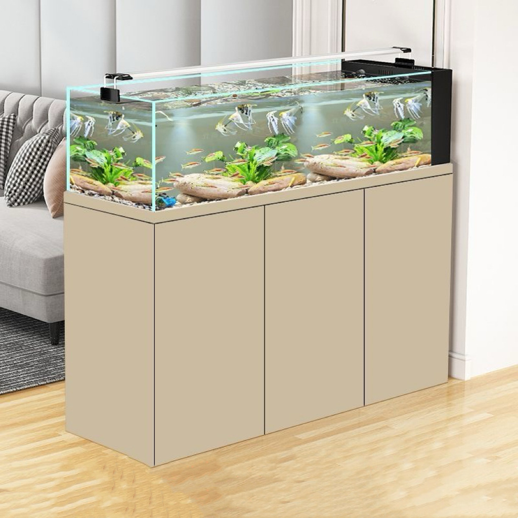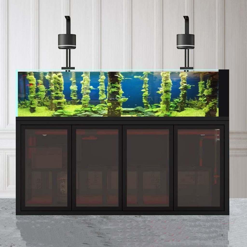 스트림 어항 새로운 거실 수생 식물 바닥 필터 어항 슈퍼 화이트 유리 사이드 오버플로 생태 해양 어항 스트림 어항스토어 가기