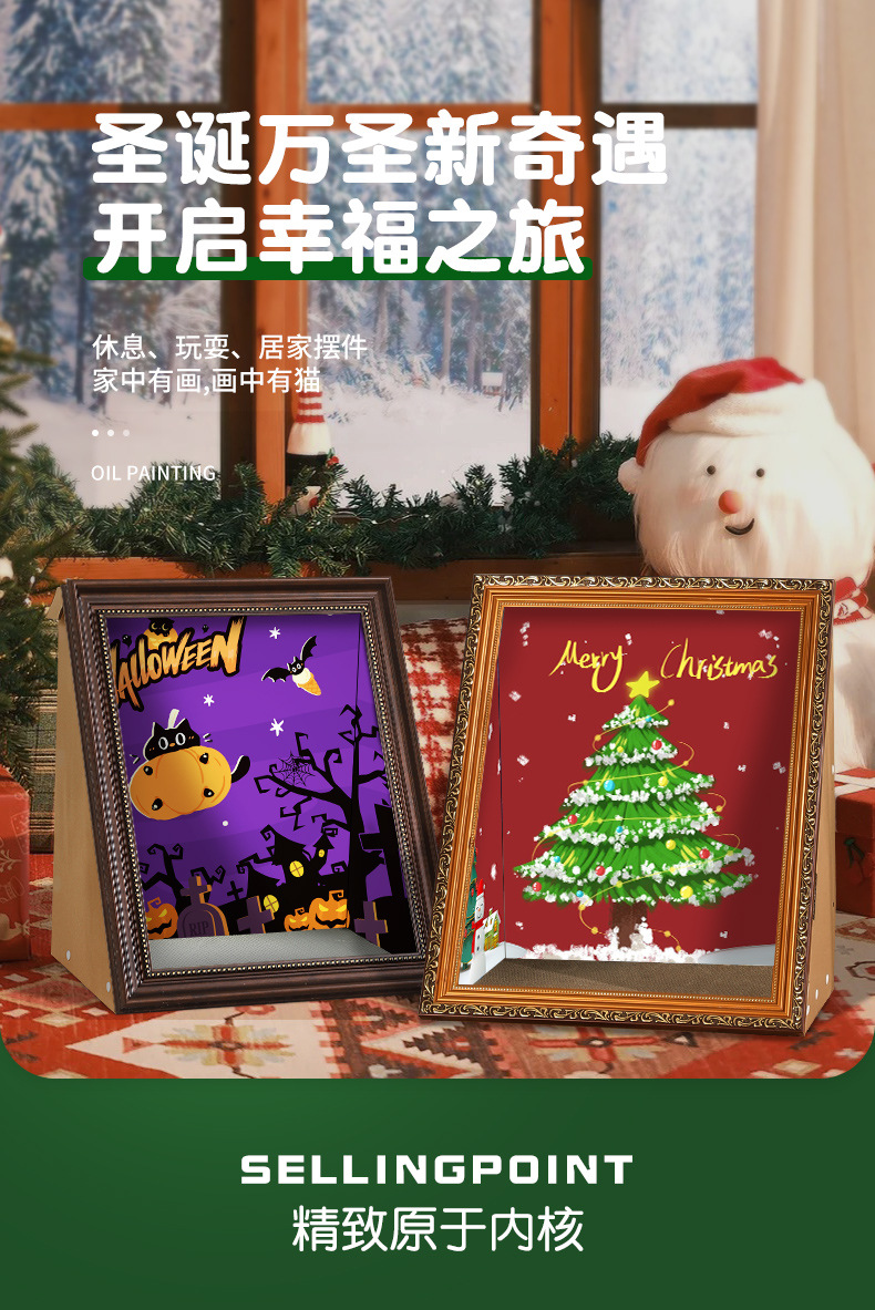 卖点④ :箱框顶部用翻盖设计采用魔术贴粘黏,方便替换背景板,让艺术永不单调
