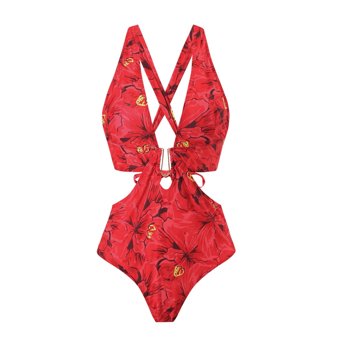 2025 유럽과 미국 대외 무역 새로운 비키니 아마존 디지털 인쇄 중공 깊은 V 메쉬 세트 해변 태양 보호 의류스토어 가기