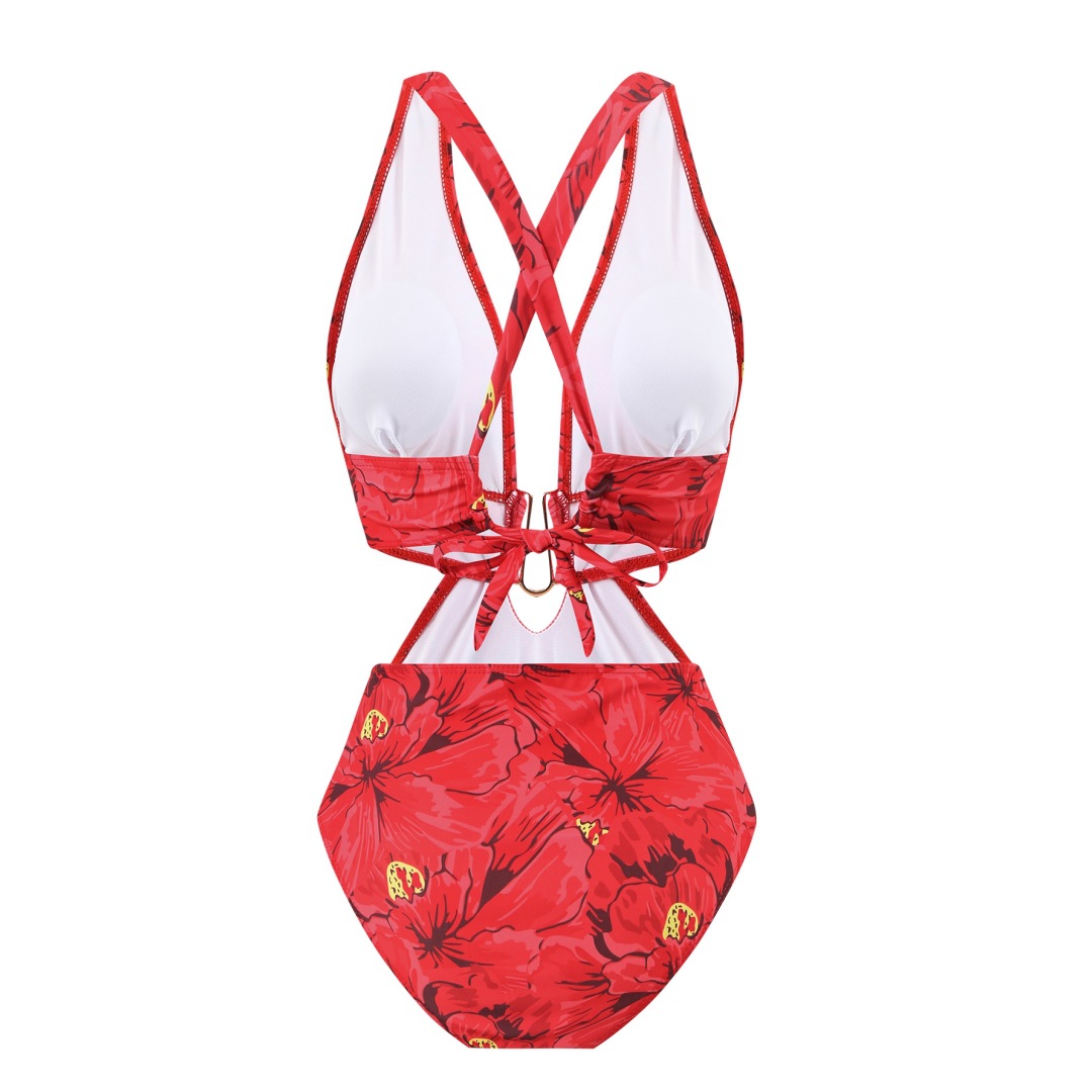 2025 유럽과 미국 대외 무역 새로운 비키니 아마존 디지털 인쇄 중공 깊은 V 메쉬 세트 해변 태양 보호 의류
