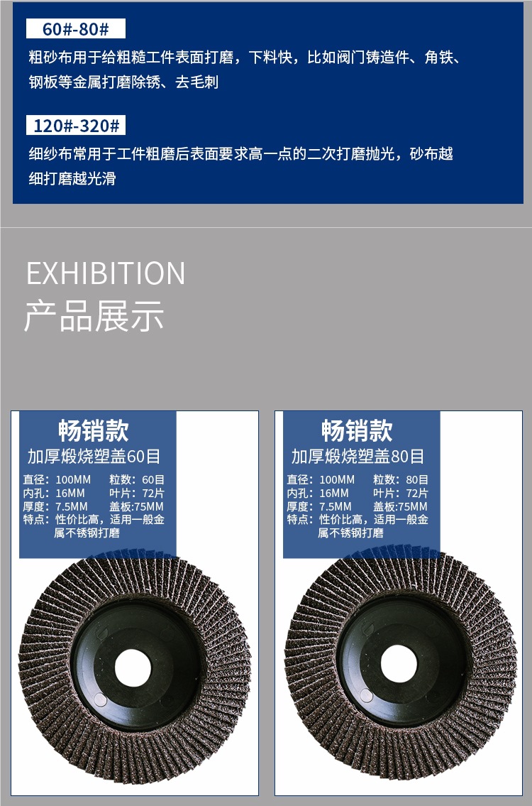 • 두꺼운 플라스틱 커버 100개(블루 샌드 80)#) 날카로운 스테인레스 스틸 연삭 디스크