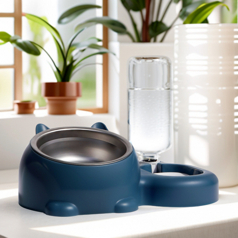 • 업그레이드된 블루 + 스테인리스 그릇 + 물병 + 물받이