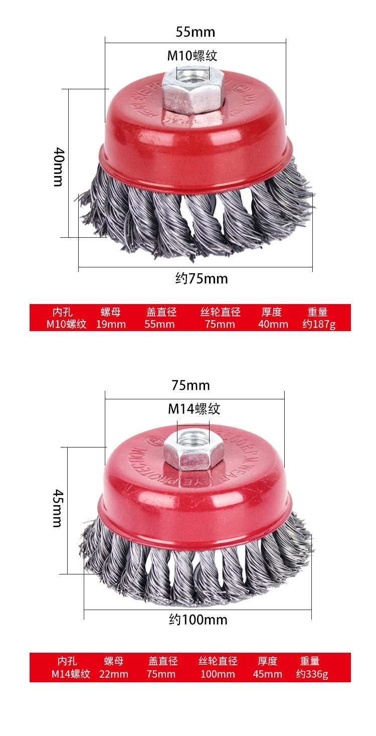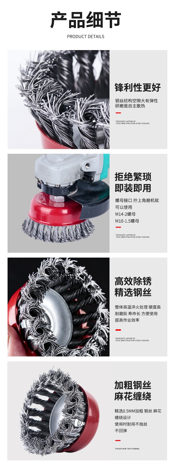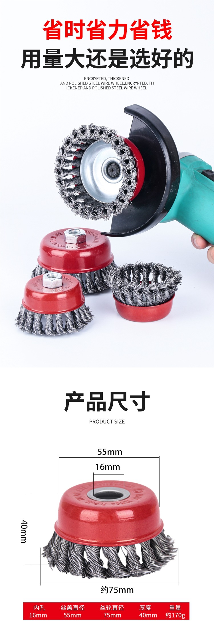 와이어 브러시 와이어 휠 연삭 연마 각도 그라인더 그릇 유형 100M10 유형 125M14 손 연삭 휠 새로운 실크스토어 가기