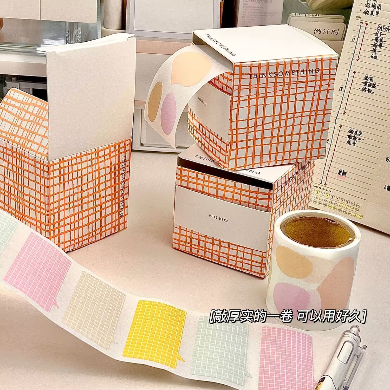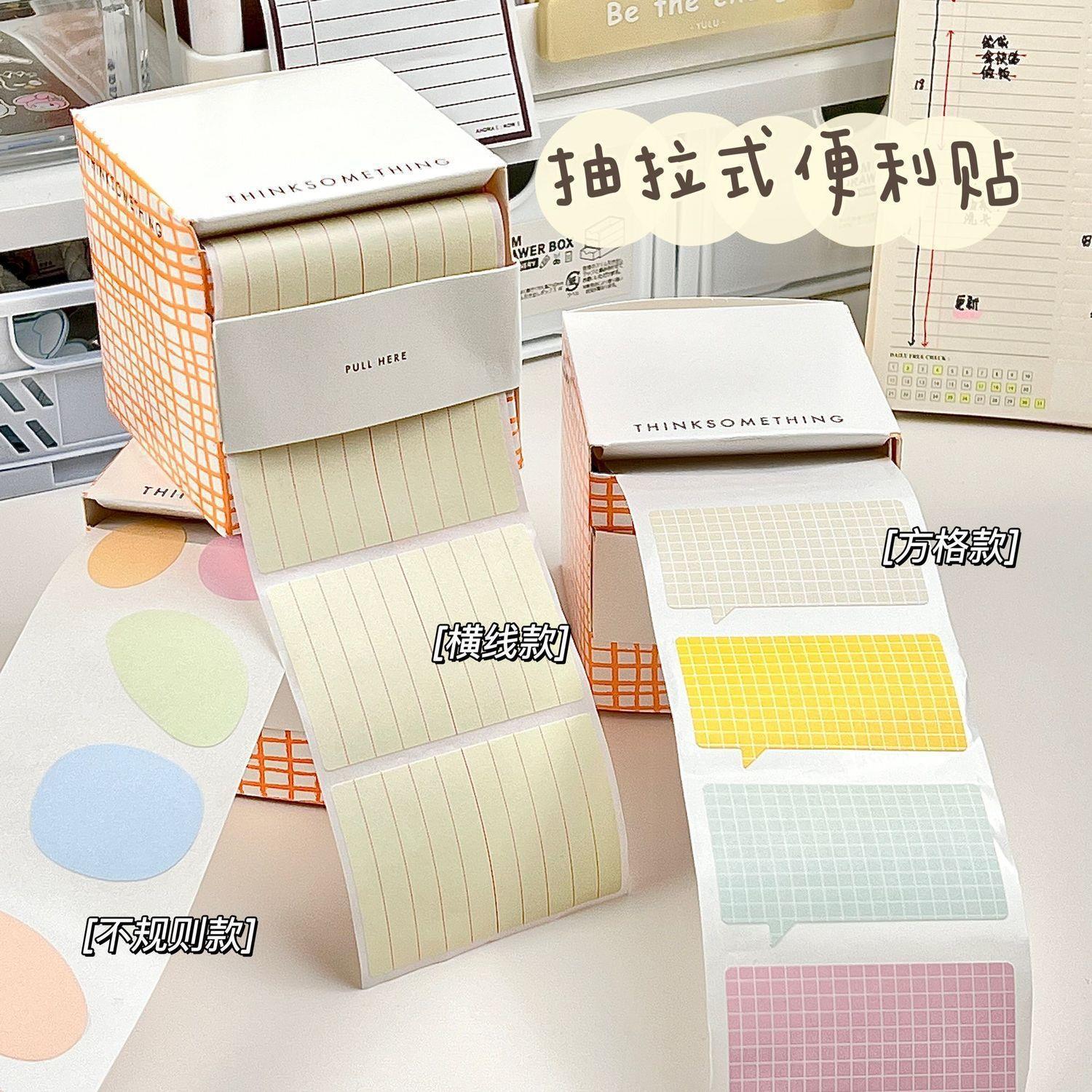 한국 인 스타일 작은 종이 상자 풀 어웨이 포스트잇 스티키 강한 수평 라인 풀 어웨이 눈물 메모 용지 간단